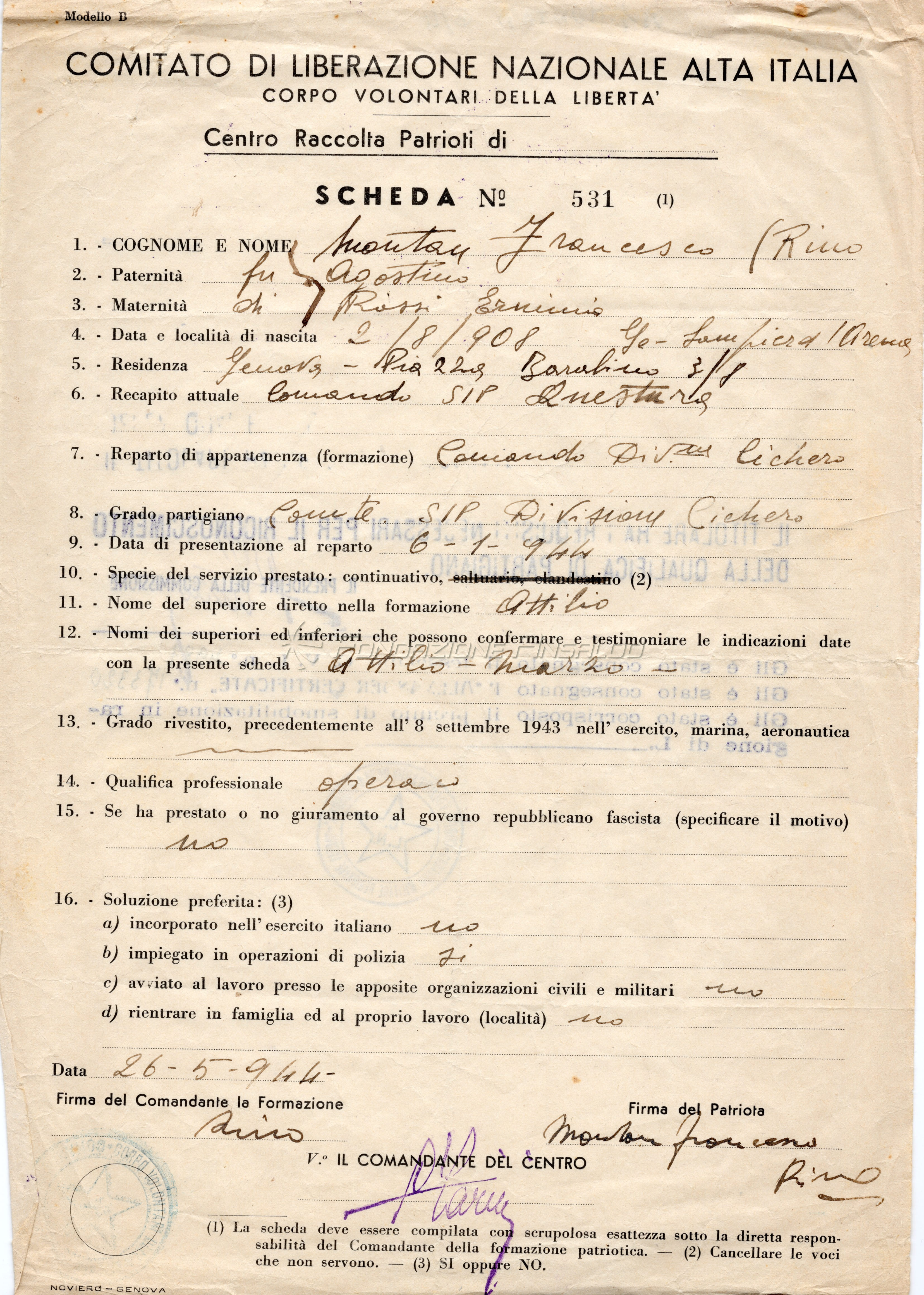 Francesco Montan, operaio dello Stabilimento Meccanico, fu uno dei comandanti partigiani della Divisione Chichero e membro del Consiglio di Amministrazione e del Consiglio di Gestione dell'Ansaldo nell'immediato dopoguerra.
