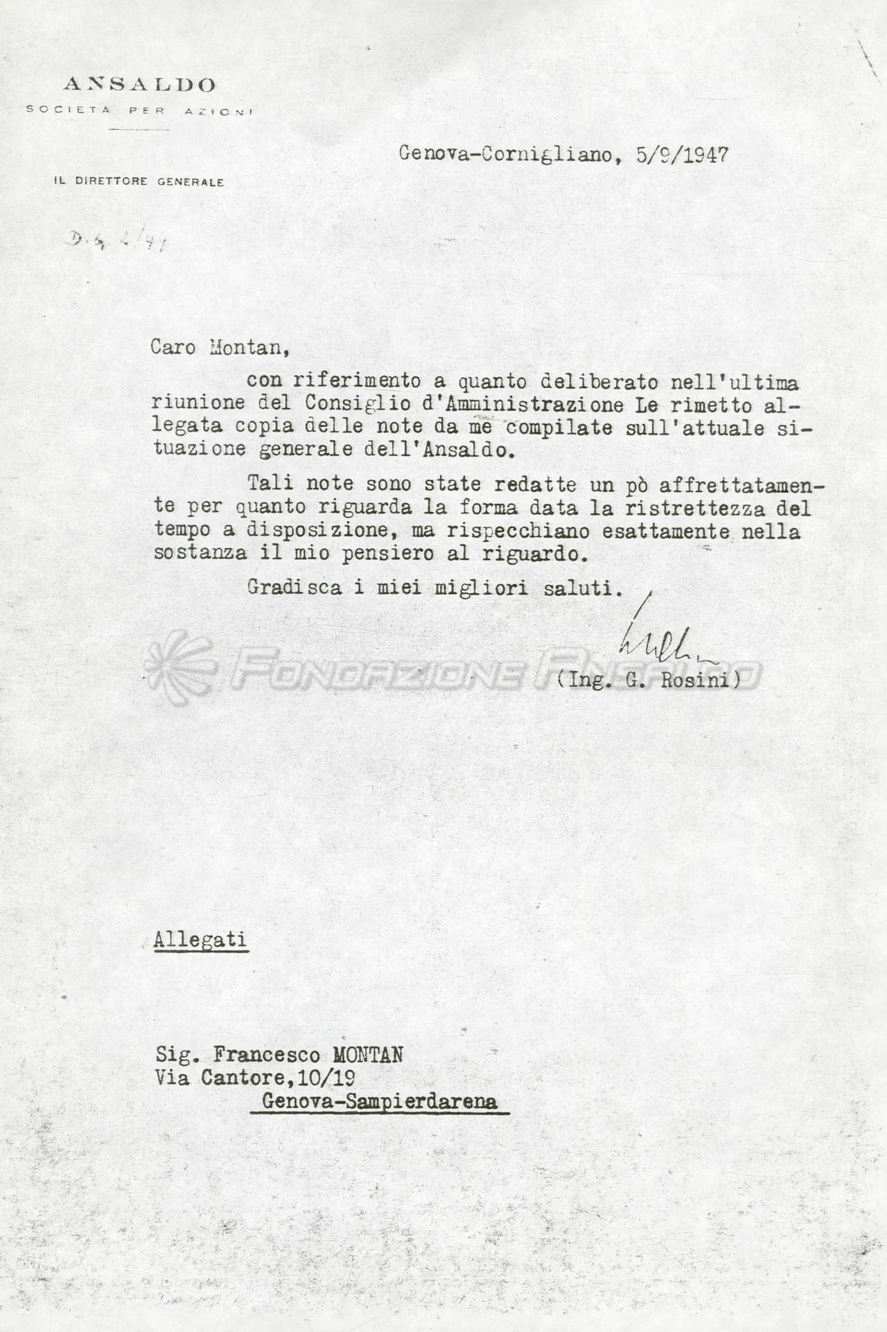 Le carte qui raccolte e cedute dallo stesso Montan, testimoniano della sua attività durante la Resistenza e dell'opera dei Consigli di Gestione Ansaldo, dei quali sono conservati i verbali dal 1945 al 1951.