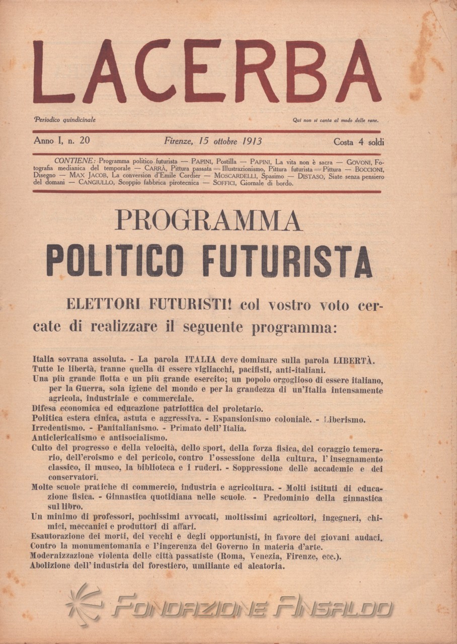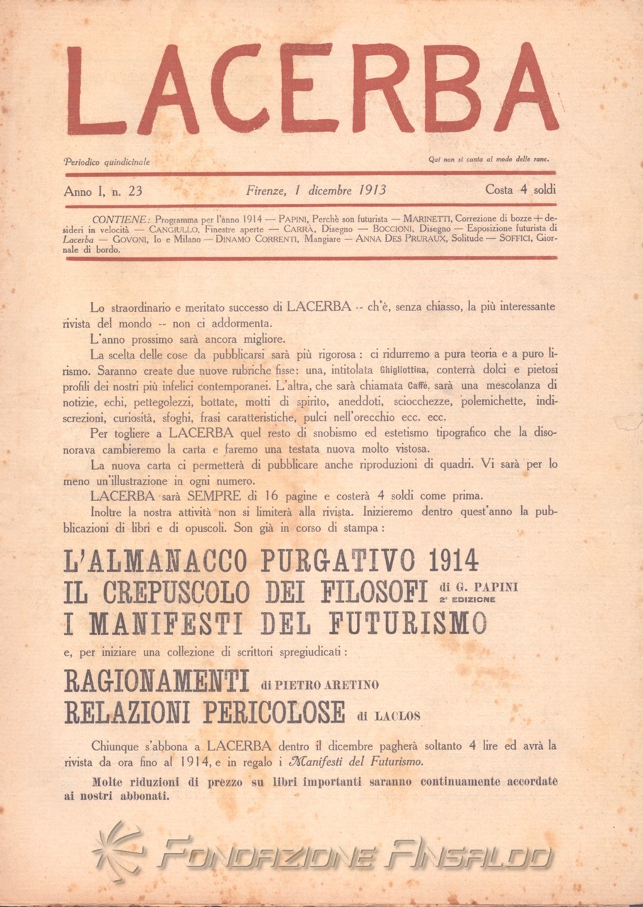 Alla fine del 1914 avviene la rottura definitiva con il movimento futurista. Il legame era durato un anno (marzo 1913 - marzo 1914) per un totale di 24 numeri.