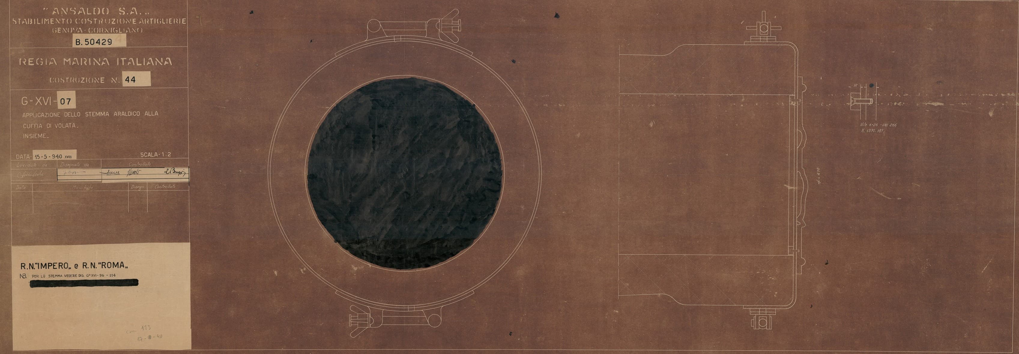 Costruzione 44 - applicazione stemma araldico alla cuffia di volata per Regia nave Impero