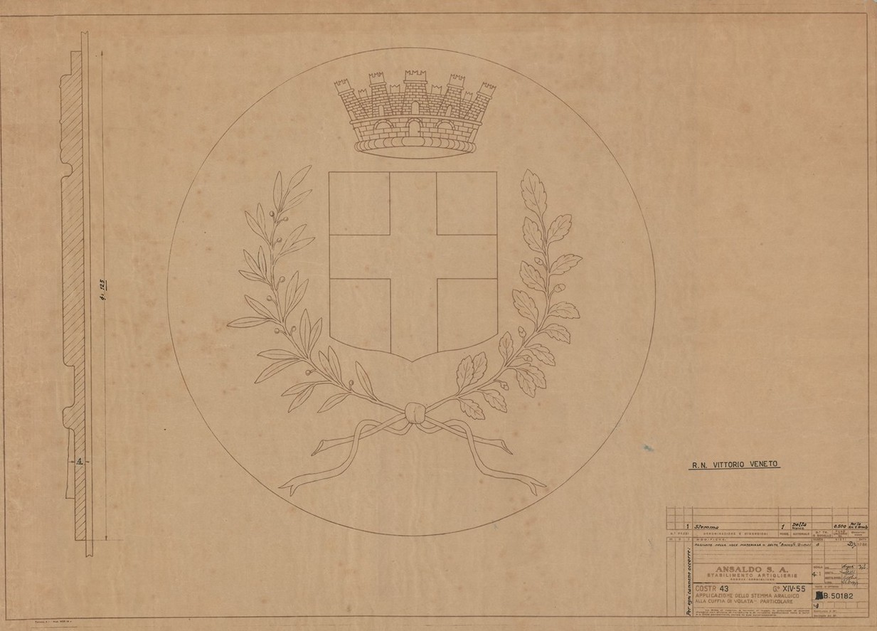 Costruzione 43 - particolari dello stemma araldico per la cuffia di volata per Regia Nave Vittorio Veneto