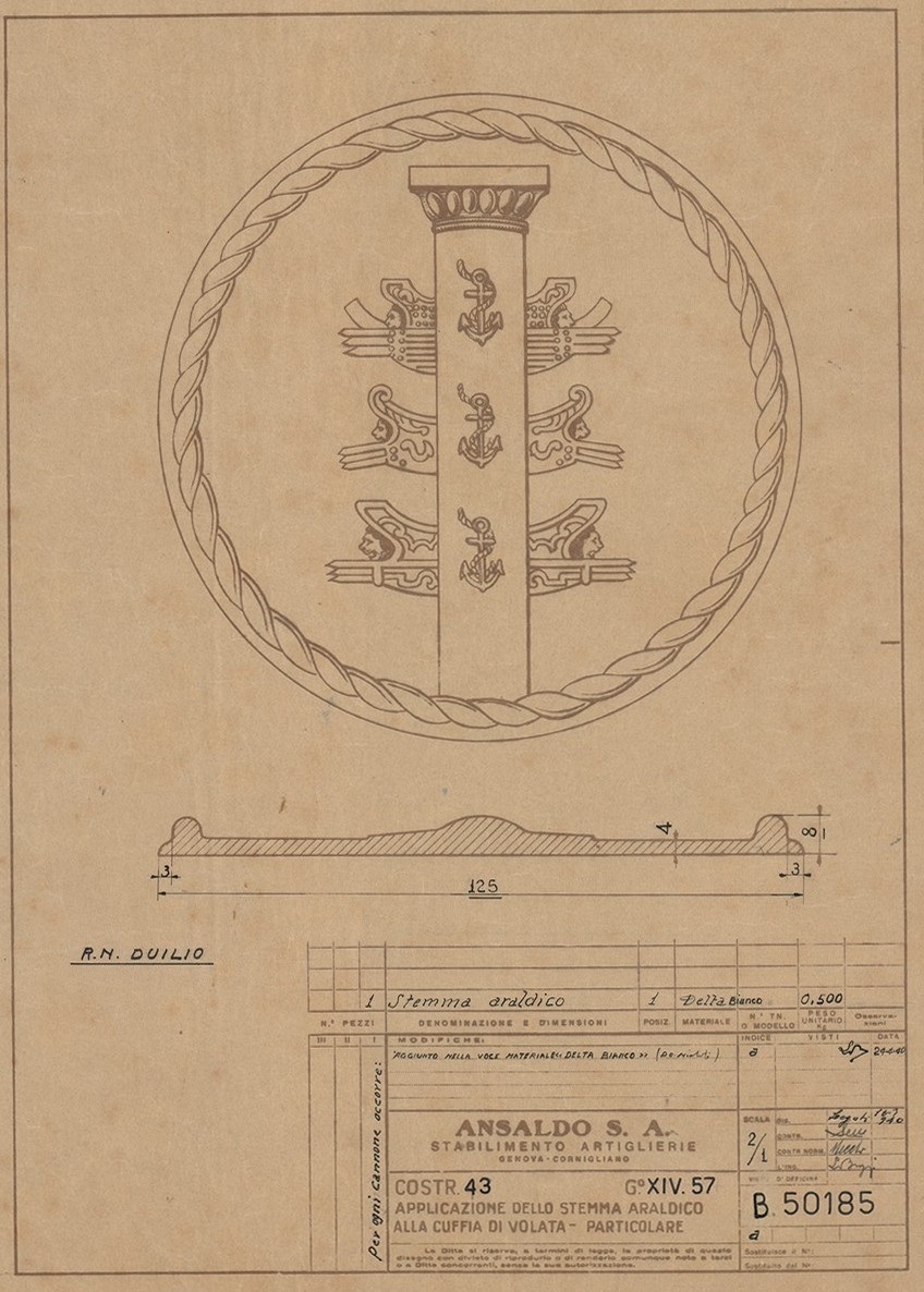 Costruzione 43 - stemma araldico per la cuffia di volata per la Regia Nave Duilio
