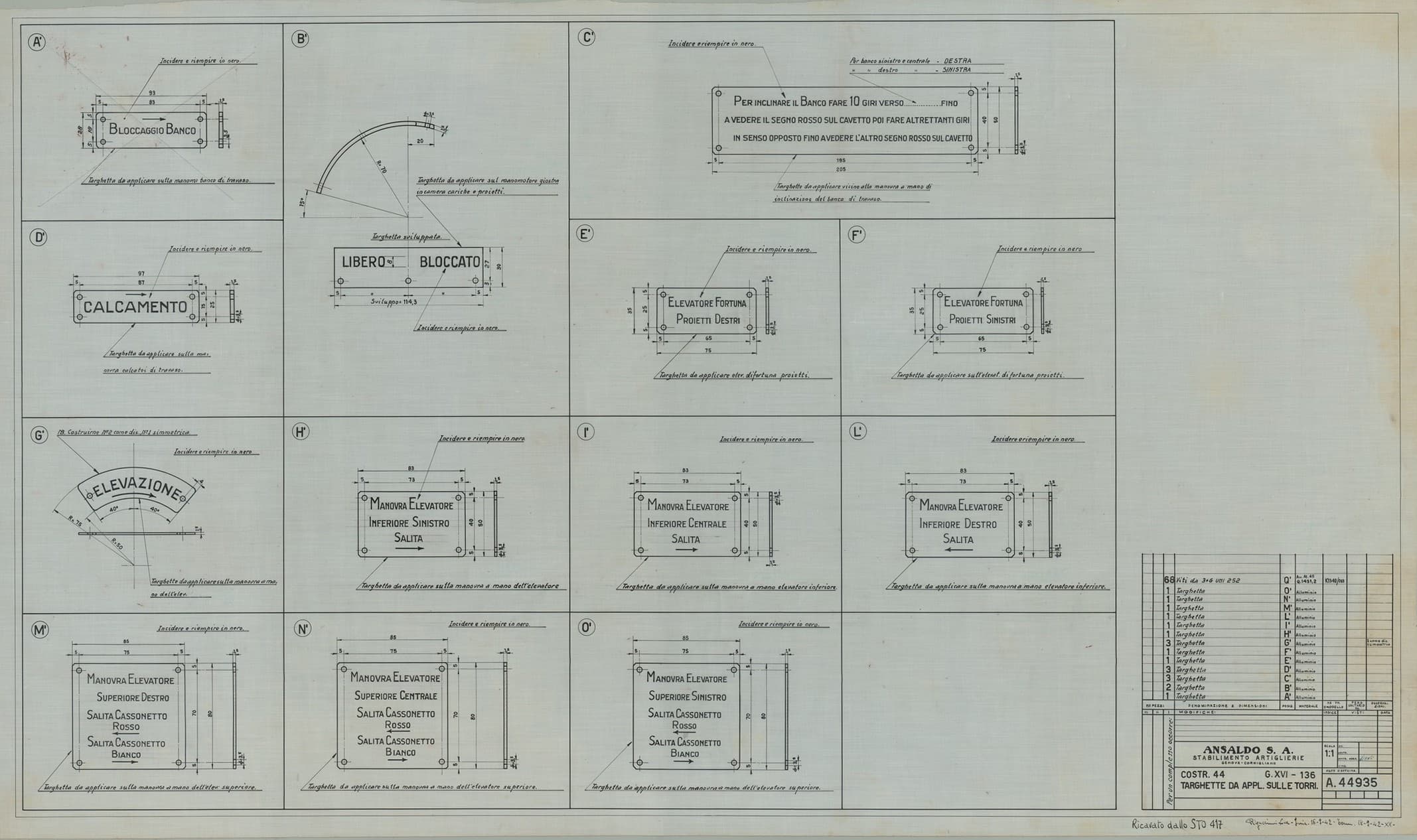 Costruzione 43 - targa e targhetta dell'affusto della bocca da fuoco