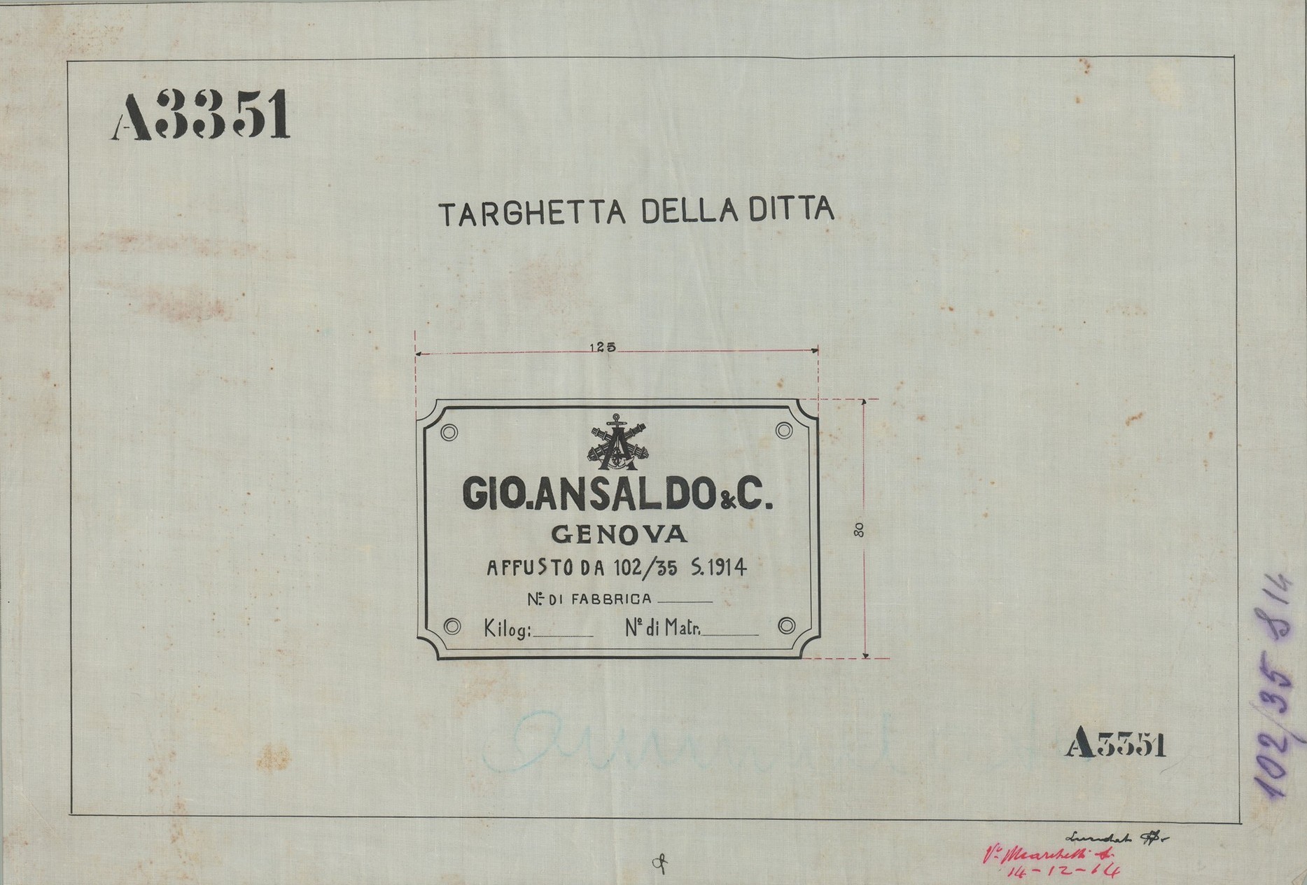 Costruzione 102/35 S.1914 - targhetta della ditta