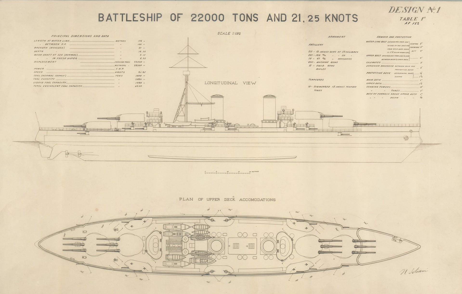 Progetto corazzata di 15.000 t. e 20 nd. per il Governo Argentino (progetto n. 1210)