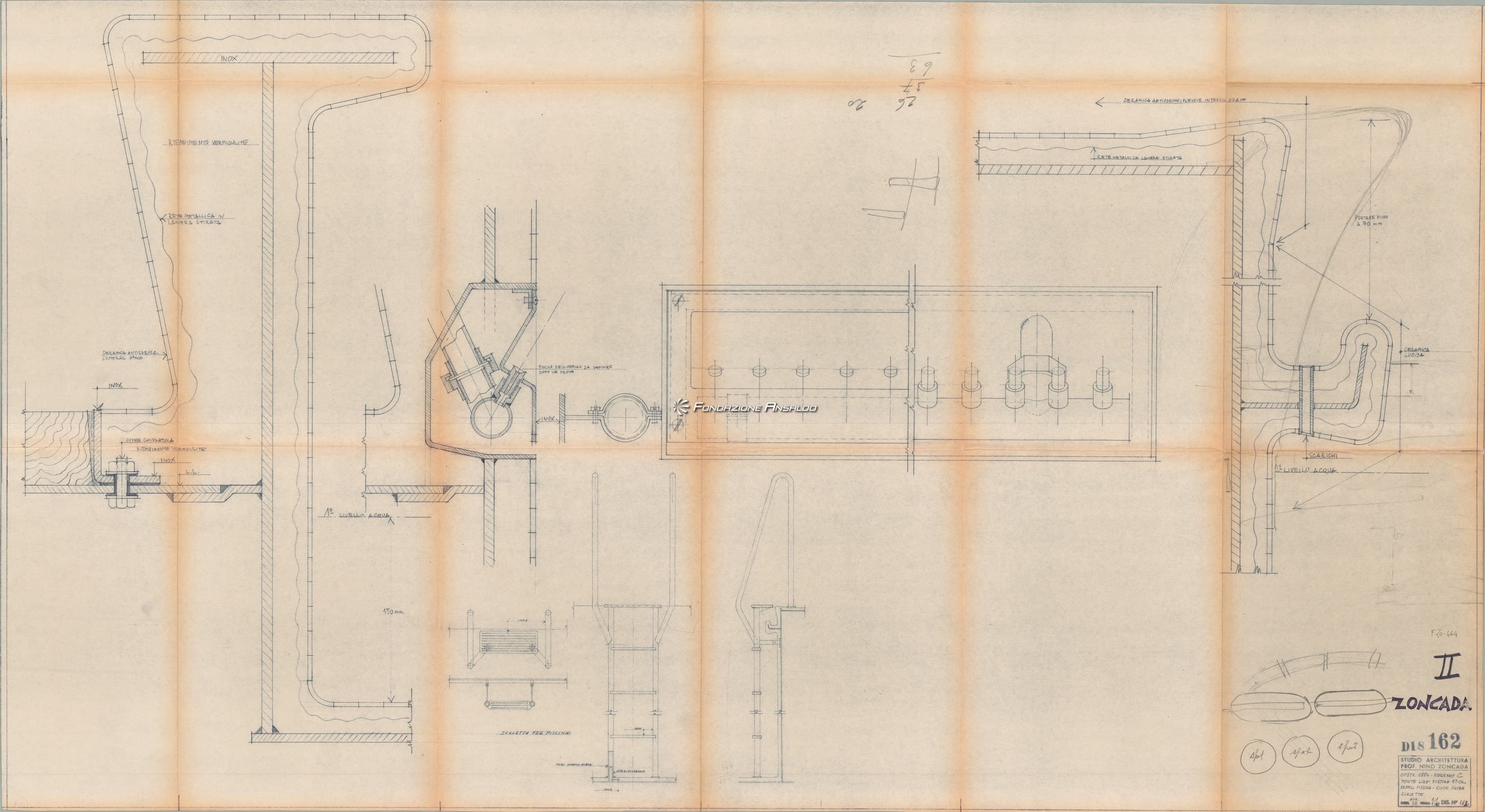 Eugenio Costa - Ponte del lido - Piscina di prima classe - Profili della piscina, giochi d'acqua e scalette