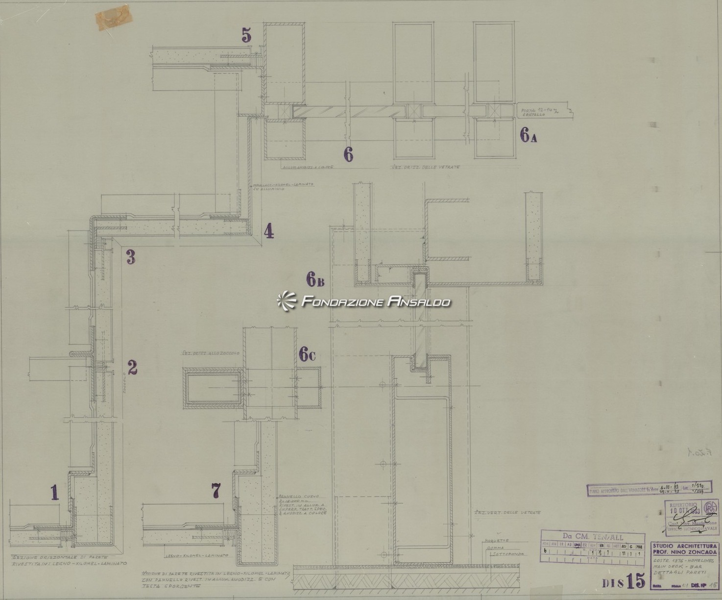 Oceanic - Lido bar - Porta tagliafuoco della parete ord. 93 - Particolari