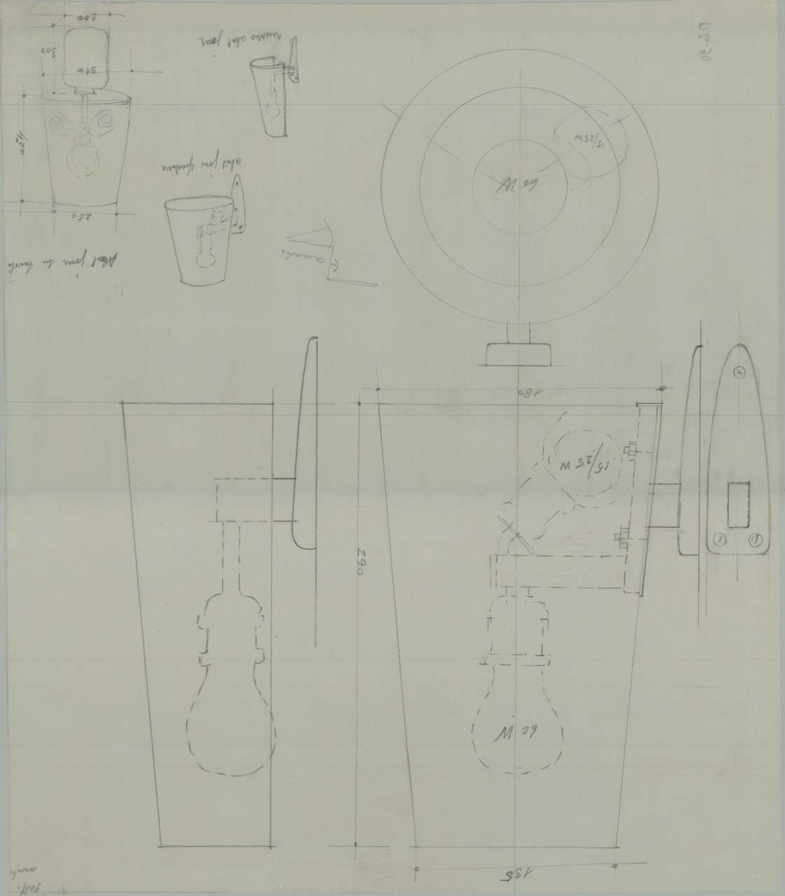 Dettagli delle abatjour da tavolo e della specchiera - Bozzetto preparatorio - Forse appartenente a Stella Oceanis