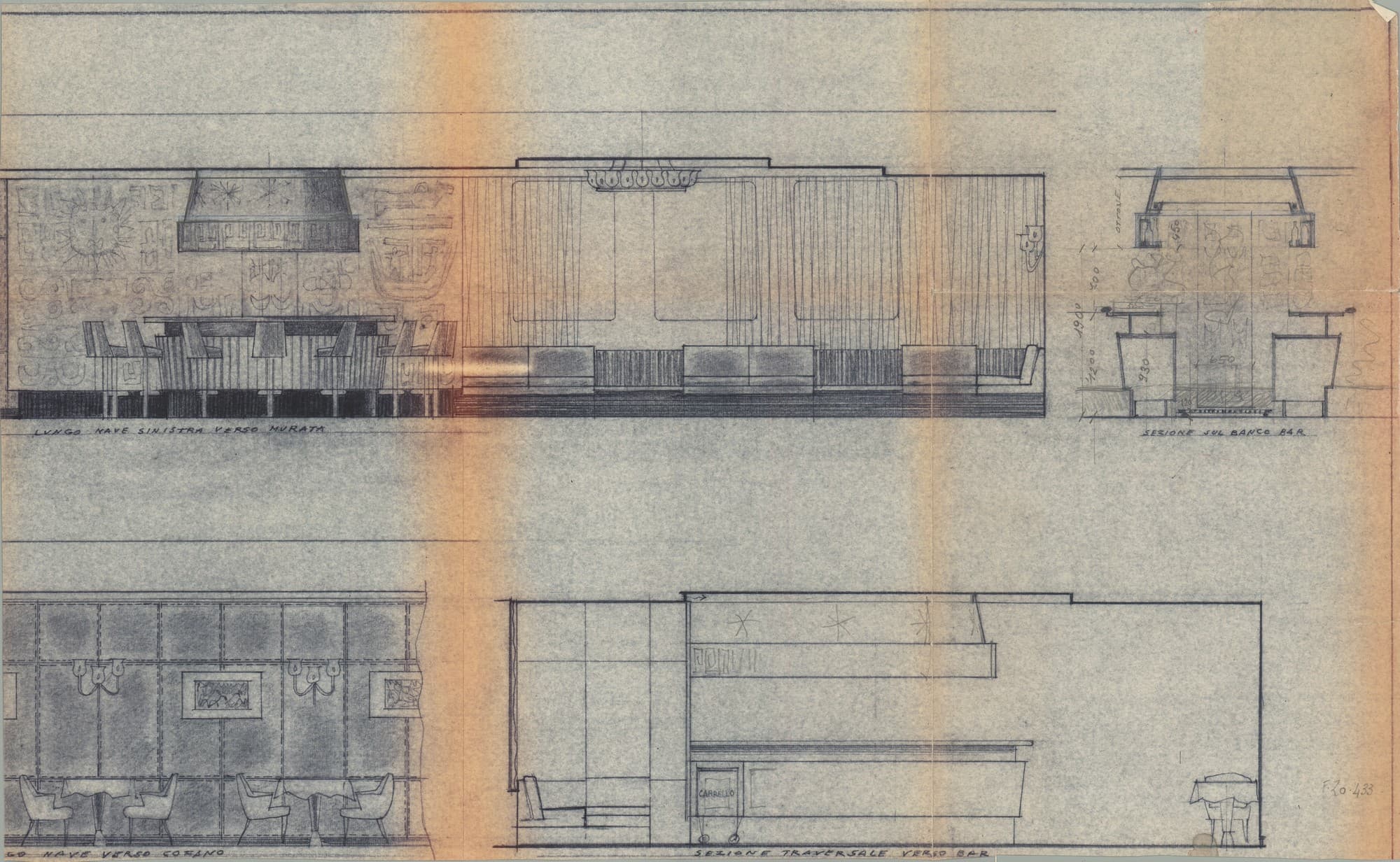 Eugenio Costa - Ponte del soggiorno e sala di lettura e scrittura di prima classe - Dettagli