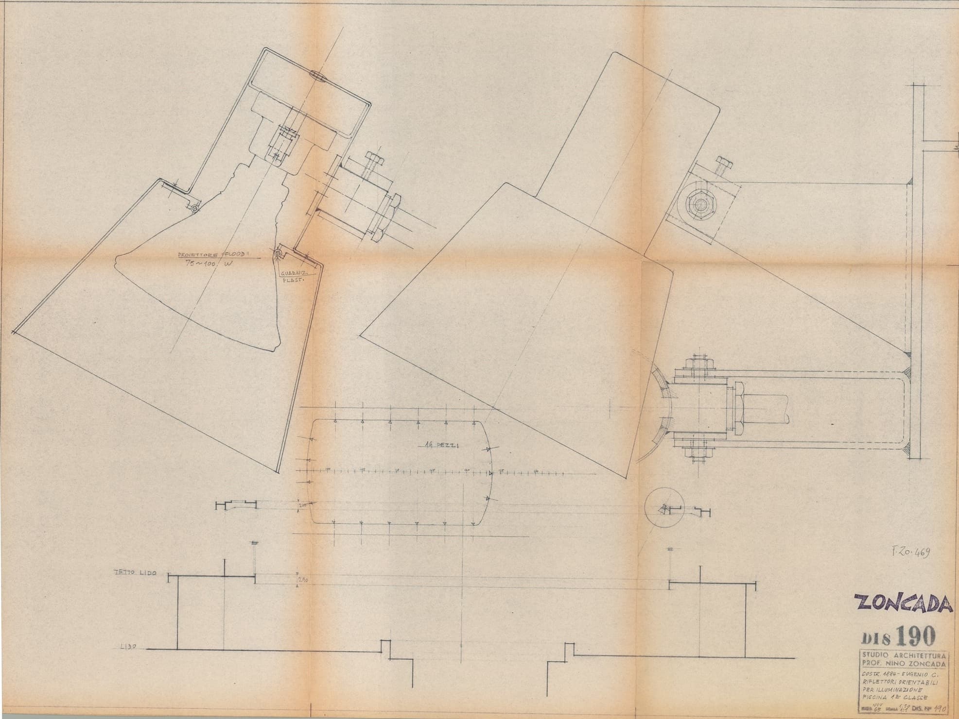 Eugenio Costa - Ponte del lido - Piscina di prima classe - Riflettori orientabili per illuminazione