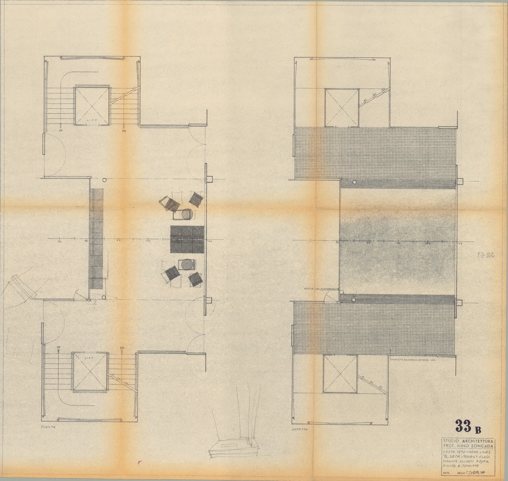 Oceanic - Ponte B - Sala da pranzo e foyer di classe turistica- Pianta e soffitto