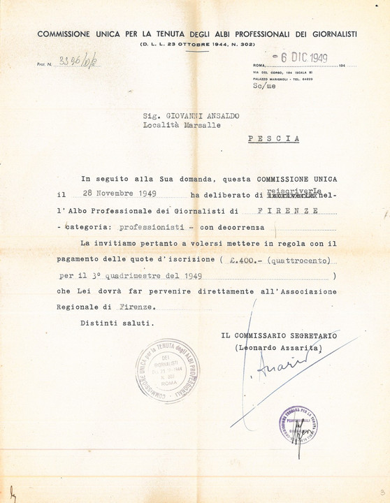 Documenti personali di Giovanni Ansaldo