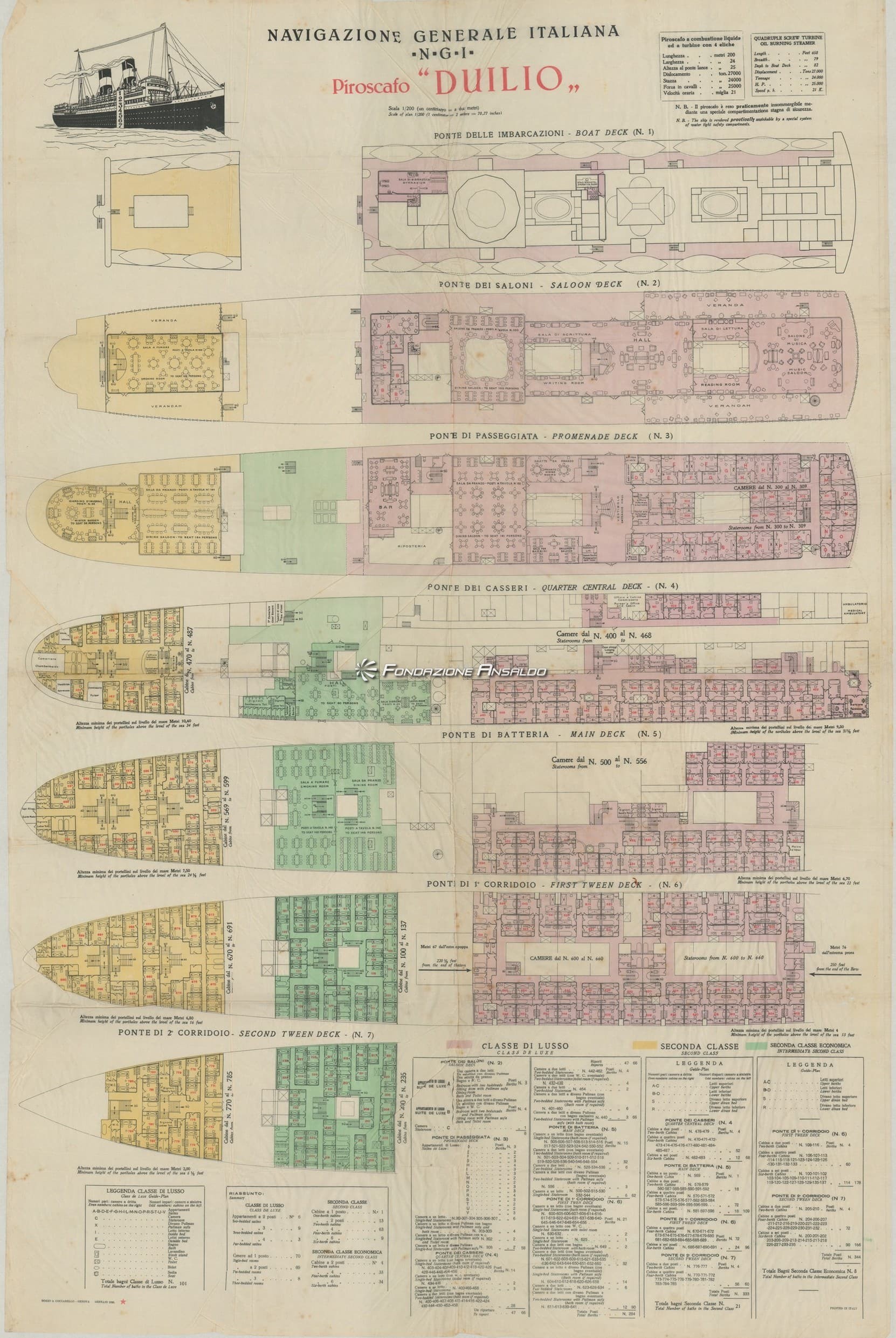 Duilio (t/n) - piano di sistemazione dei passeggeri