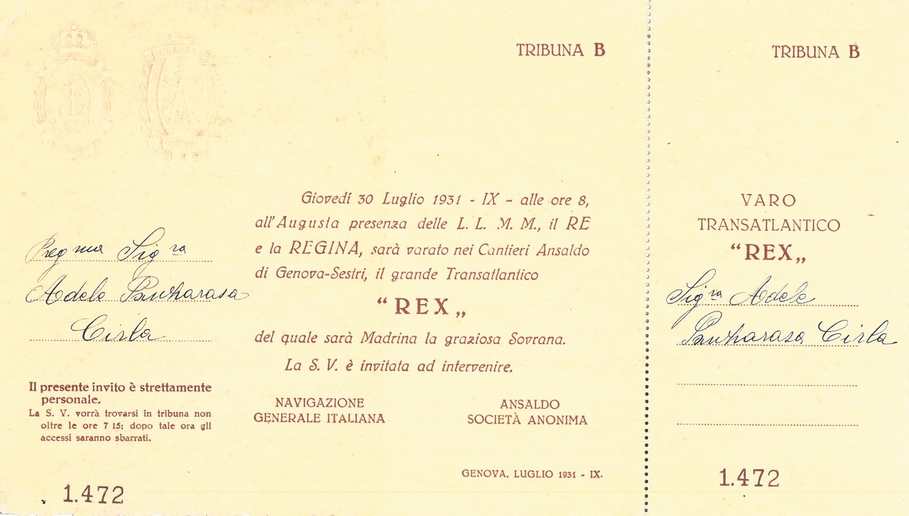 Rex (t/n) - biglietto di invito al varo del transatlantico