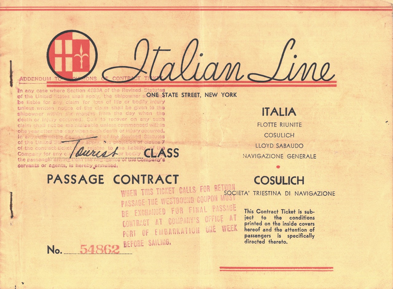 Rex (t/n) - titolo di viaggio da New York a Napoli a bordo del transatlantico Rex