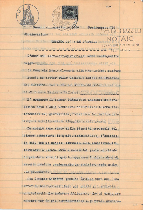 Documentazione inerente il processo di Giovanni Ansaldo, al termine della Seconda Guerra Mondiale, per i suoi legami con il regime fascista.