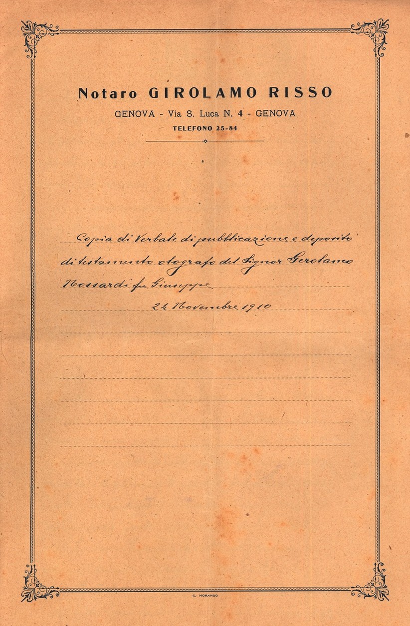 Si segnala in particolare il libretto di navigazione e il testamento di Gerolamo Nossardi fu Giuseppe (nato a Nervi il 9 ottobre 1836, deceduto a Nervi il 23 novembre 1910) e il testamento di sua moglie Maria Drago (deceduta a Nervi il 23 novembre 1919).