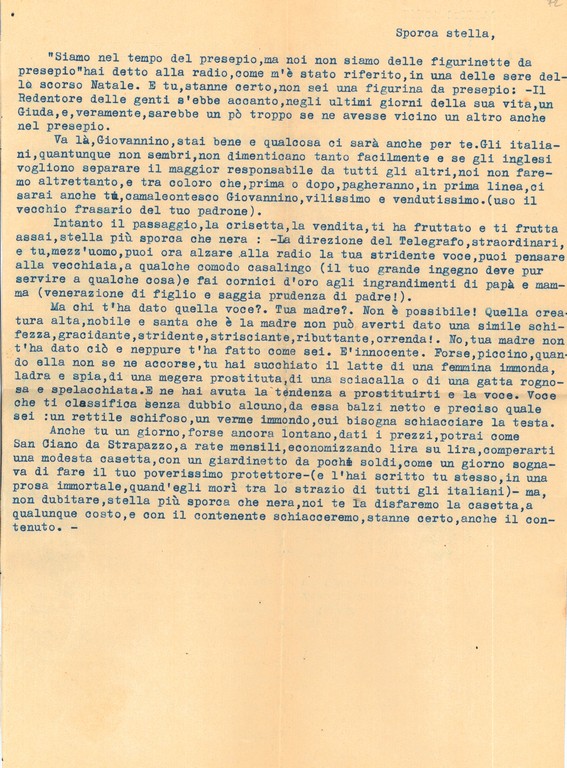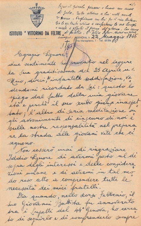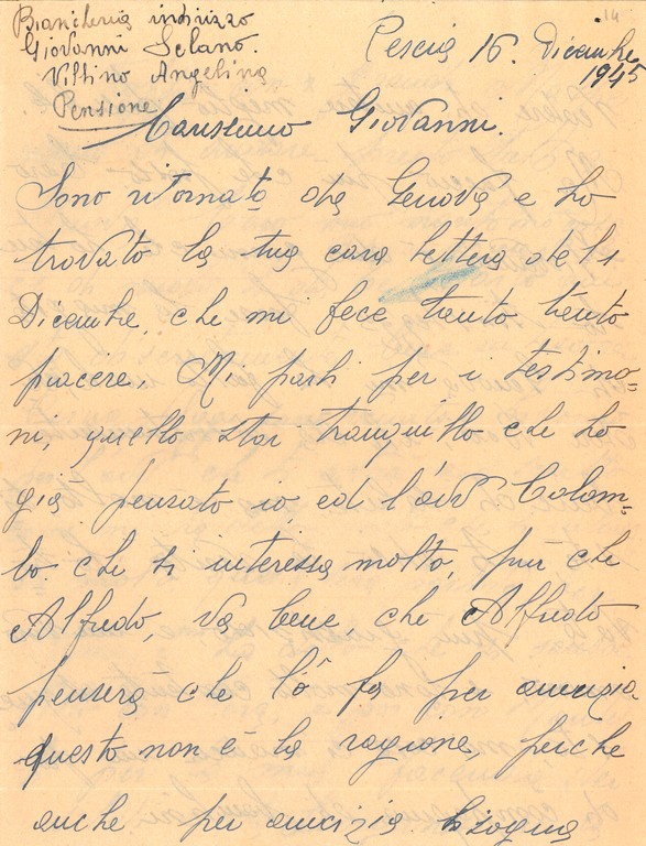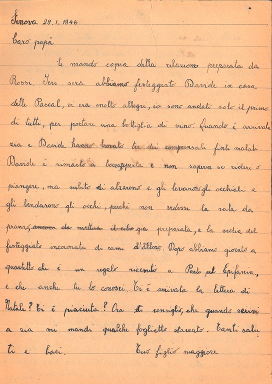 La documentazione è prevalentemente costituita dalle lettere inviate a Giovanni Ansaldo dalla moglie Maria Luigia Boscoscuro e da altri famigliari e amici.