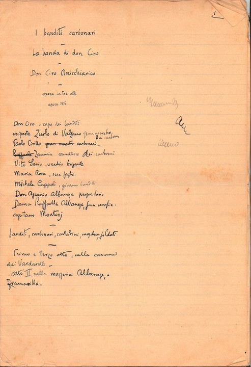 I banditi carbonari - Piano di un'opera che non fu mai scritta