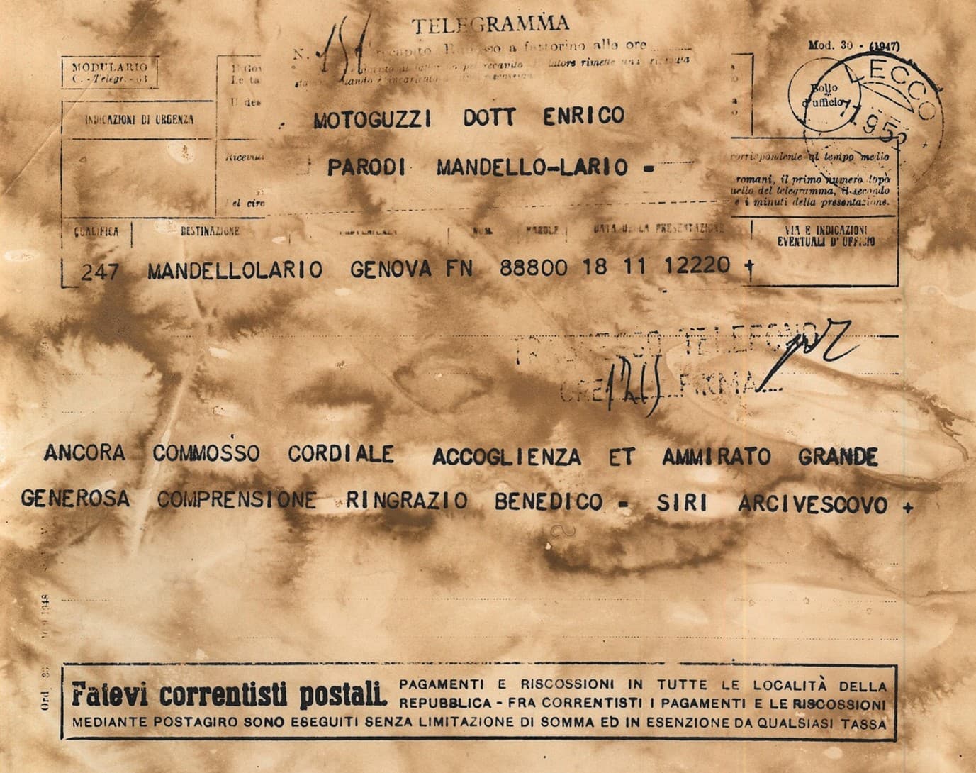 Moto Guzzi - visita dell'arcivescovo Giuseppe Siri