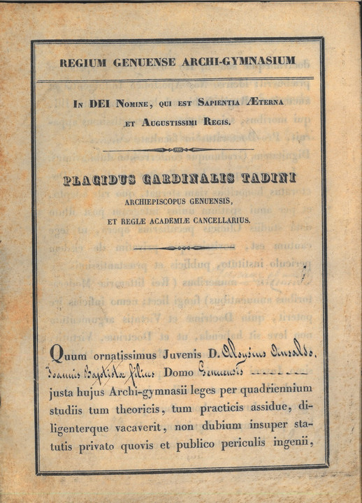 Carteggi appartenuti a Luigi Ansaldo figlio di Giovanni Battista e Antonietta Traverso. Laureatosi in medicina e chirurgia presso la Regia università di Genova ottenne di poter esercitare come chirurgo. Non si sposò mai e, dopo la morte del fratello Giovanni, si occupò dell'educazione dei nipoti insieme alla sorella Rosa.