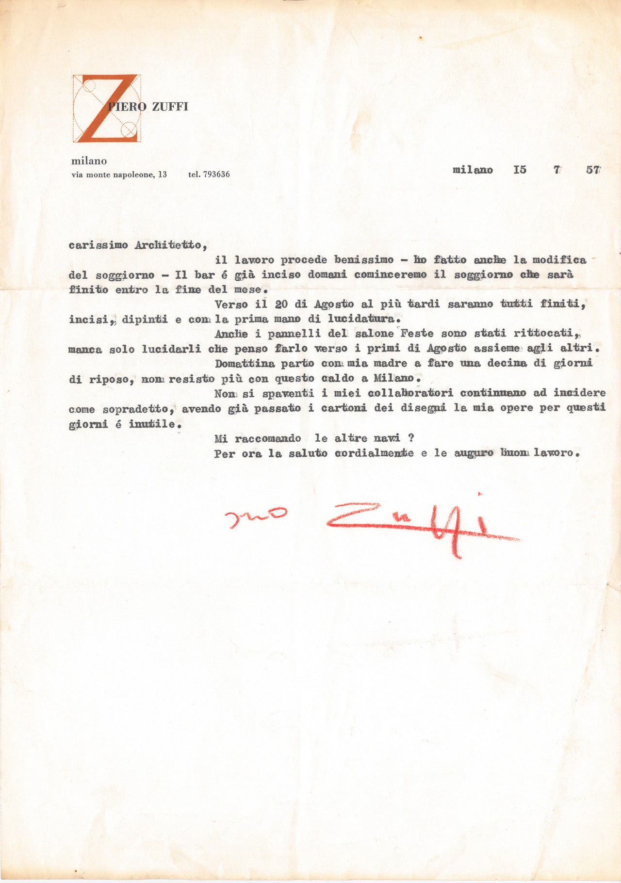 Corrispondenza prevalentemente in entrata intercorsa tra Giovanni "Nino" Zoncada e artisti ed architetti con cui Zoncada collaborò durante la sua attività.