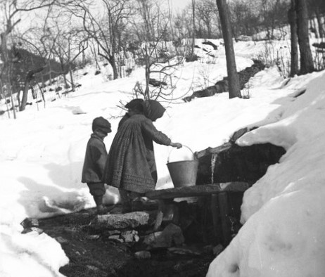 Paola Franzoni (Lina) che cuce alla finestra
