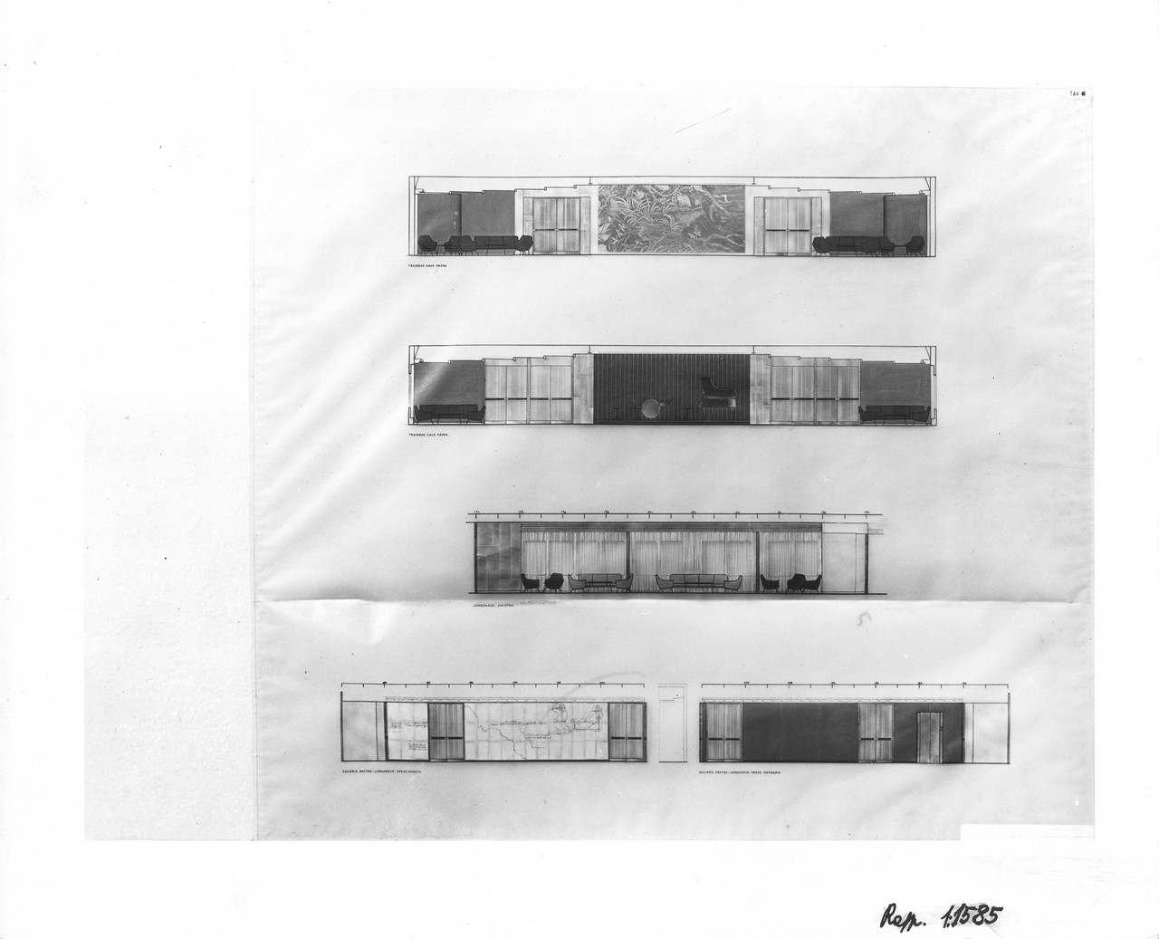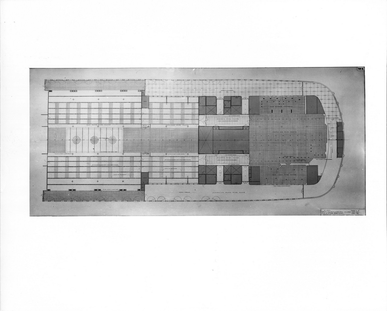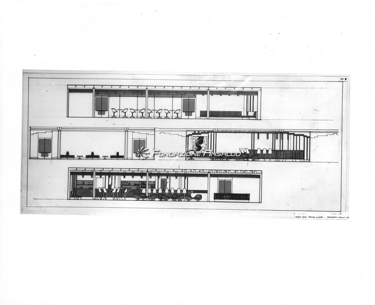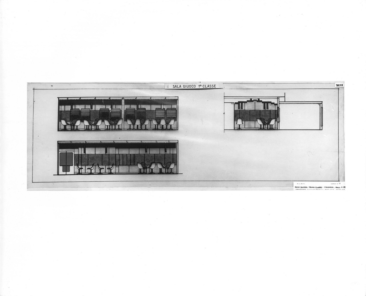 Nella sala di soggiorno era esposto sulla parete di prora un grande arazzo realizzato su disegno di Capogrossi dalla medesima arazzeria Scassa.
