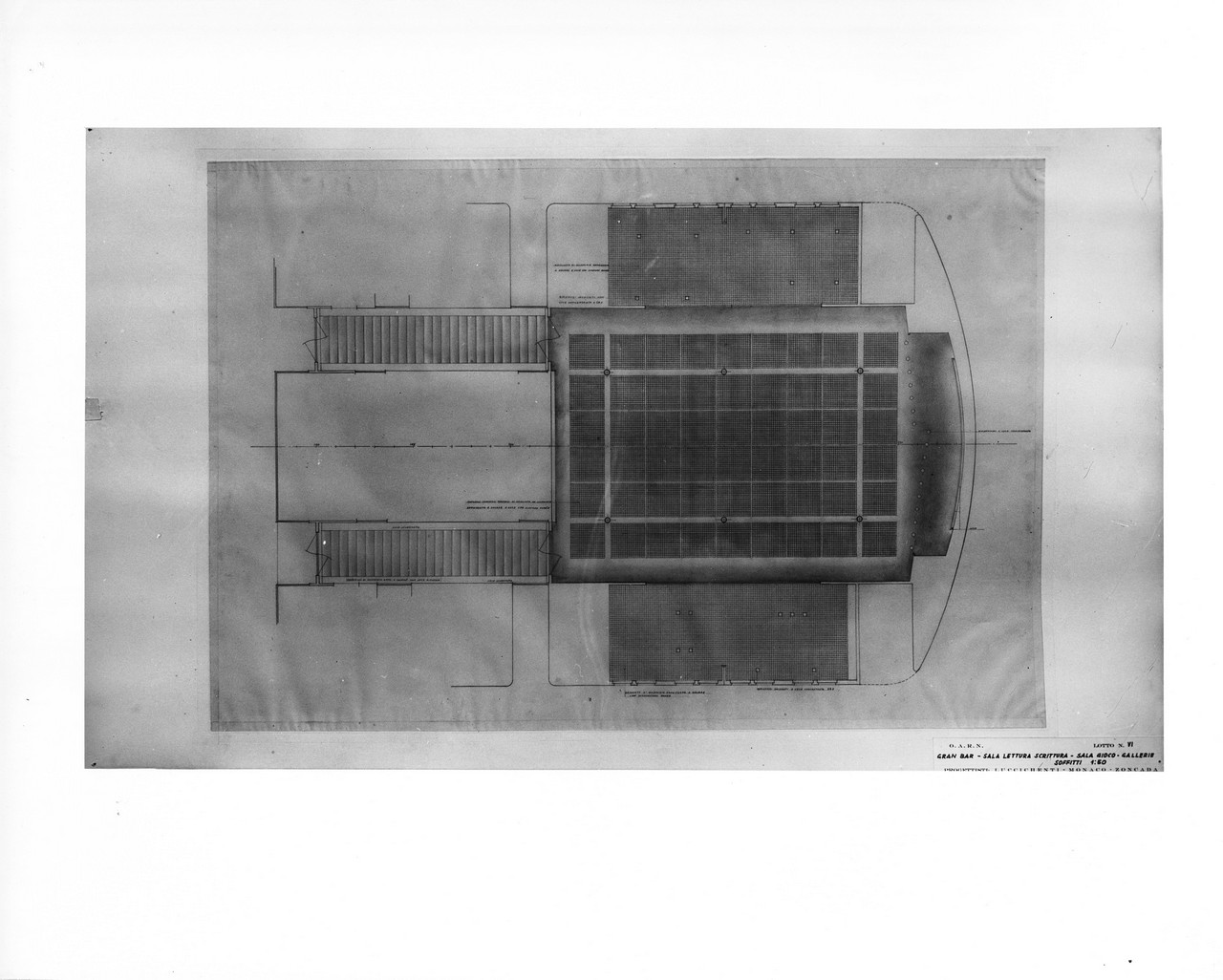 Le sale progettate da Zoncada si estendevano nella parte anteriore del ponte di passeggiata e avevano una particolare importanza i volumi e le dimensioni della sala delle feste e la sala di soggiorno, tra le due sale l’architetto scelse di creare una continuità funzionale e strutturale riunendole attraverso il podio dell’orchestra che fu collocato sulla linea di divisione dei due ambienti.