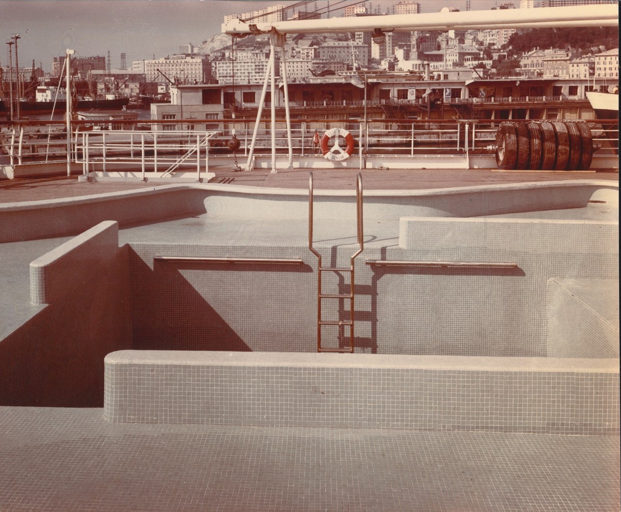 La Federico C inoltre disponeva di un lido con piscina per ogni classe, le vasche hanno un contorno con disegno organico, che diviene la forma tipica dei disegni di Zoncada.
