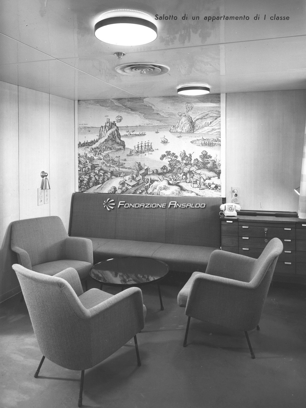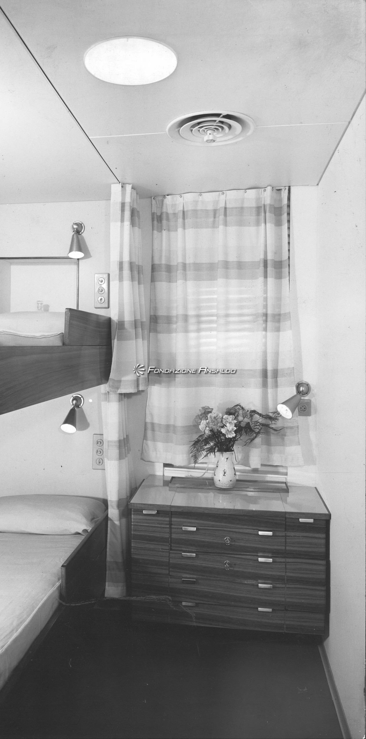 Angelo Costa affidò interamente a Nino Zoncada l’allestimento del nuovo transatlantico. Gli ambienti della nave furono caratterizzati da linee essenziali e da ampie superfici nude: le vaste pareti rivestite in laminato erano interrotte solo da ricchi tendaggi, mentre esili puntelli conferivano leggerezza alle sale, poltrone e tavolini con scocca in metallo accentuavano l’impressione di leggerezza dell’arredo.