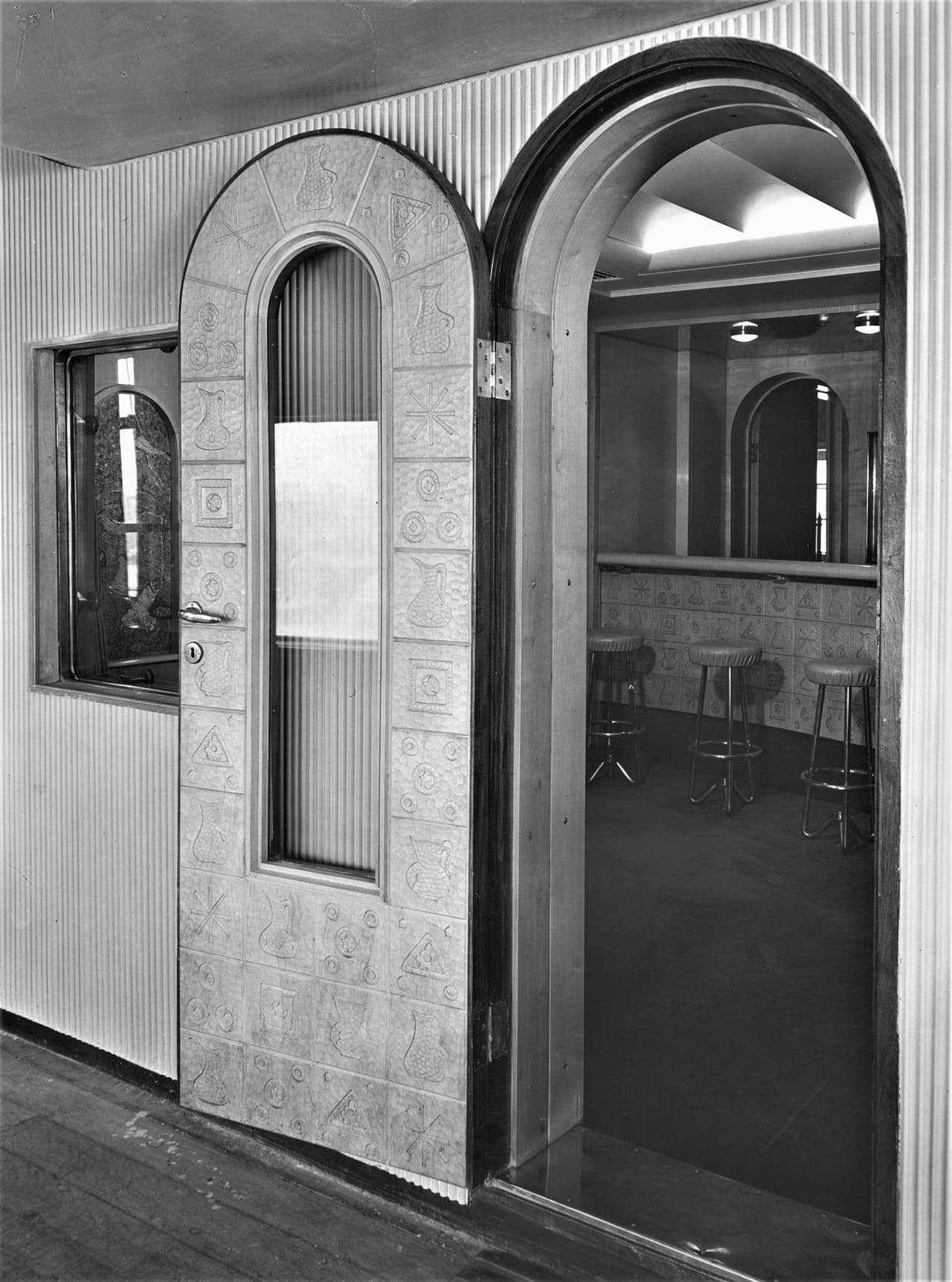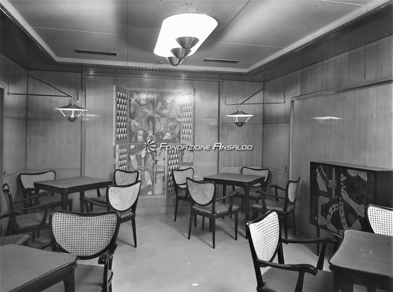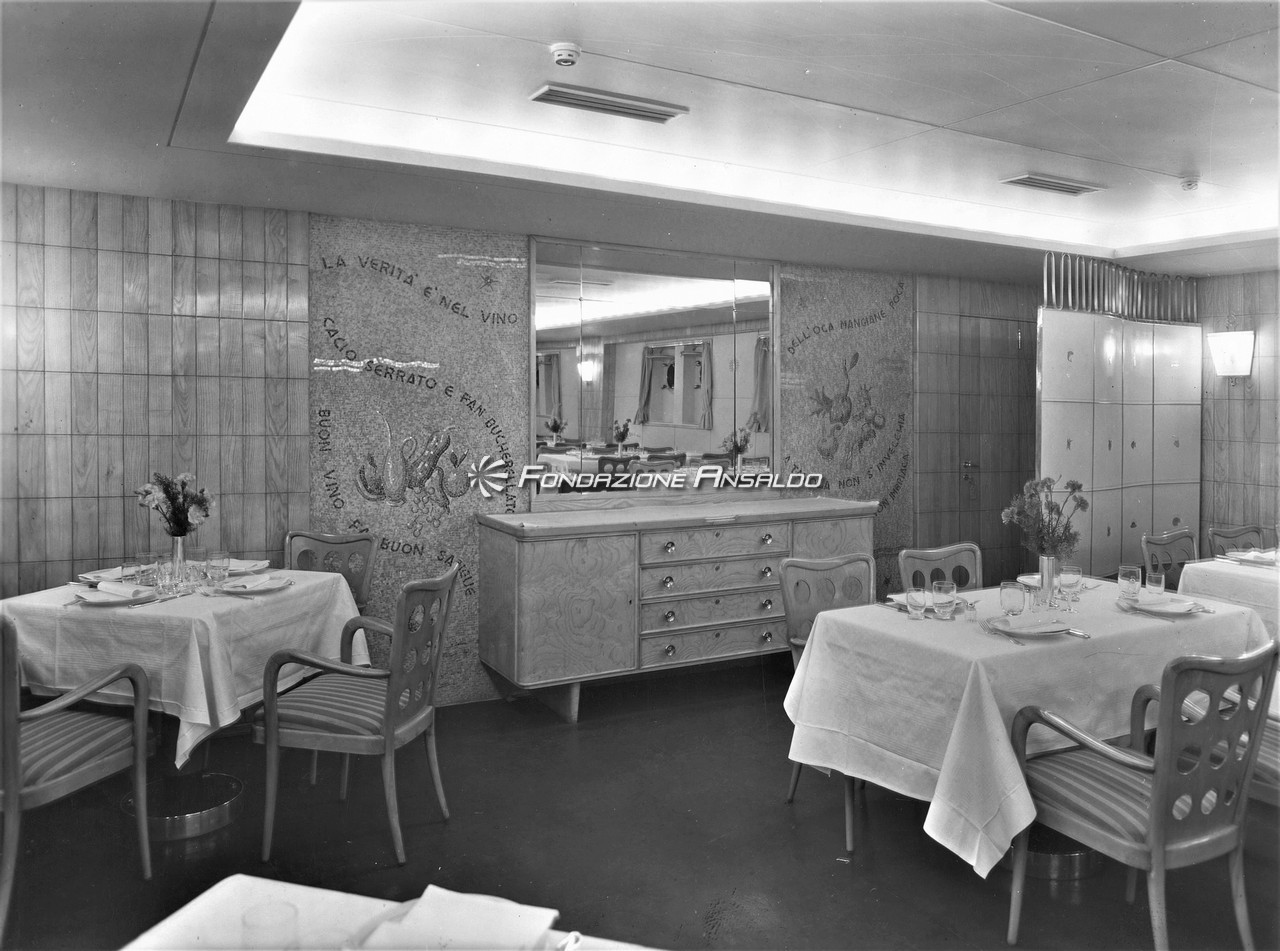 Attraverso la perizia artigianale e artistica di alcuni pittori e scultori con cui c’erano già state delle collaborazioni, quest’ultimo tradusse poi in pratica i ricci interventi decorativi ideati: le porte della sala da gioco e del bar di prima classe furono rivestite con sbalzi in rame realizzati da Primo Bidischi, così come il rivestimento del bancone del bar stesso e le pareti in foglia d’oro della sala delle feste. Le tarsie in legno della sala da gioco furono invece prodotte dall’ebanista Umberto Rossi, mentre il grande pannello ligneo dello scalone di prima classe da Ferruccio Quaia.