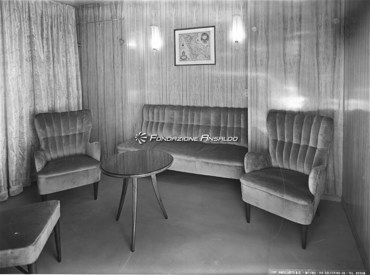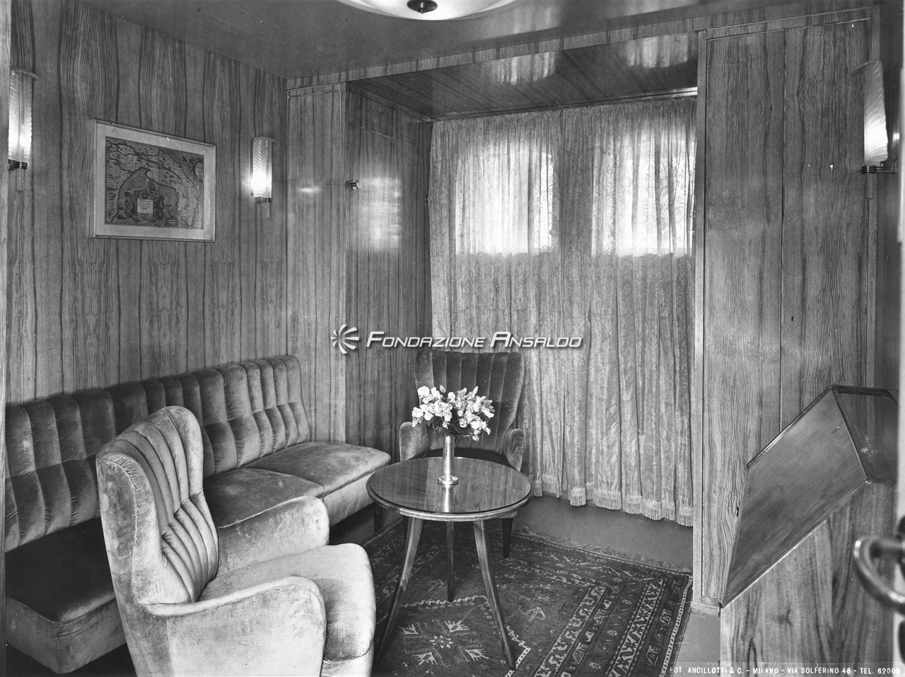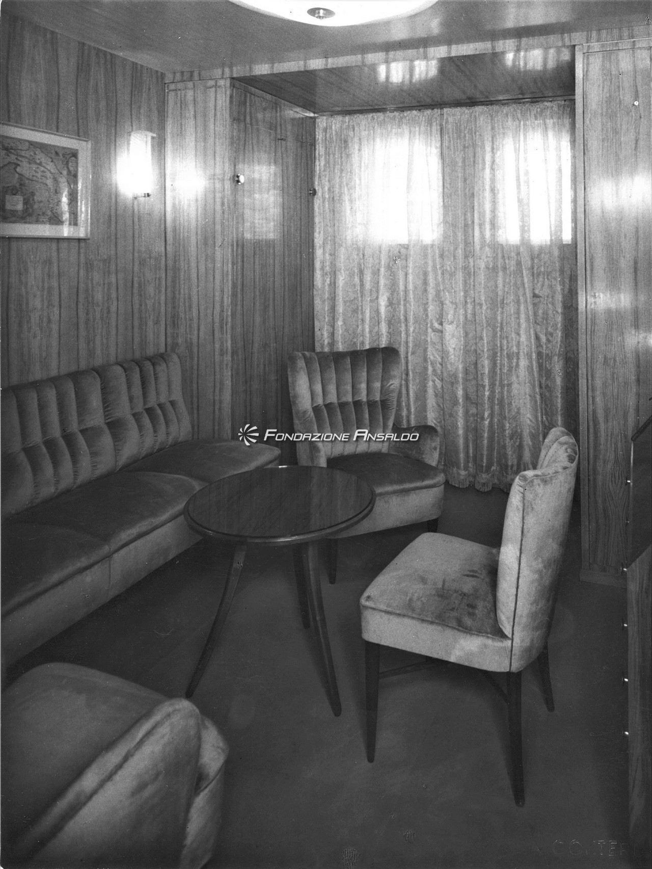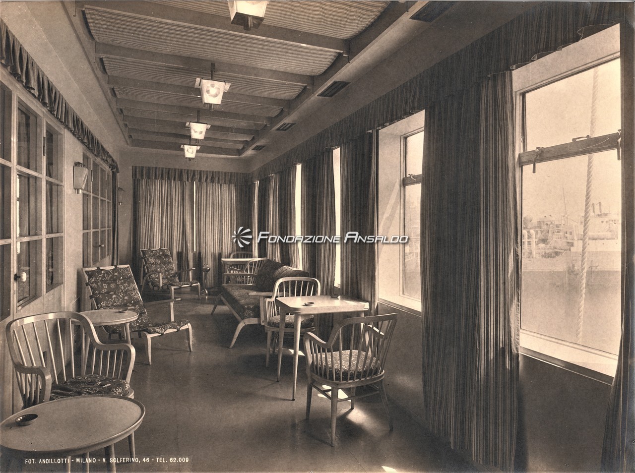 Zoncada, a bordo della Anna C, iniziò la ricerca di un linguaggio architettonico più maturo e personale rispetto ai lavori eseguiti nel decennio prebellico per l’Ufficio arredamento del Cantiere navale triestino di Monfalcone. Il gusto eclettico scelto nel disegno degli elementi di arredo e nella selezione dei materiali costruttivi, tuttavia, denotò ancora un profondo legame con il linguaggio espressivo usato in precedenza. Alle pavimentazioni in gomma e linoleum, e ai tessuti prevalentemente in tinta unita, destinati a divenire una componente distintiva delle produzioni di Zoncada, si affiancava difatti la scelta di legni chiari (frassino e rovere) come materiale dominante degli allestimenti. L’abbondante ispirazione al mobile svedese e all’arredamento scandinavo, premonitrice dell’infatuazione che investì la scuola italiana di design negli anni cinquanta, faceva invece da contraltare ai richiami alle linee dettate da Gio Ponti e Gustavo Pulizer per i transatlantici italiani del primo dopoguerra.