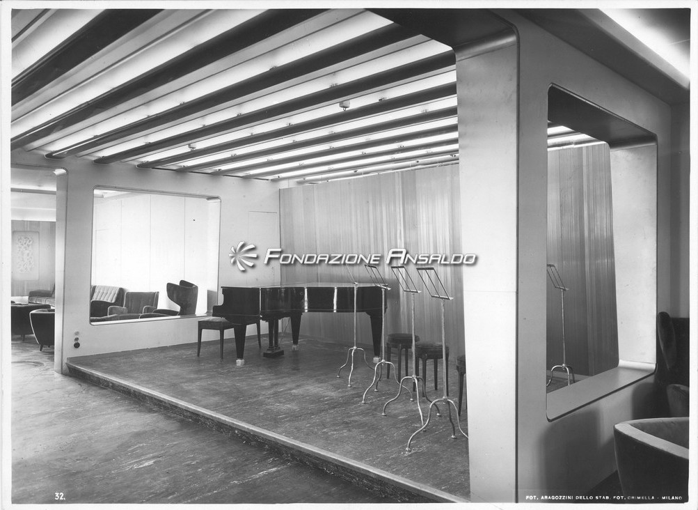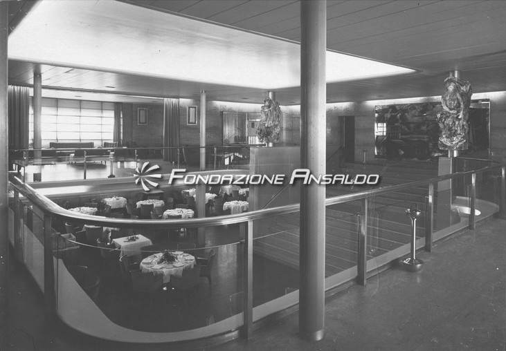 Inoltre per la realizzazione dell’allestimento decorativo della nave vennero chiamati artisti di fama internazionale, come: Fausto Melotti, Edina Altara, Pietro Melandri e Lucio Fontana.