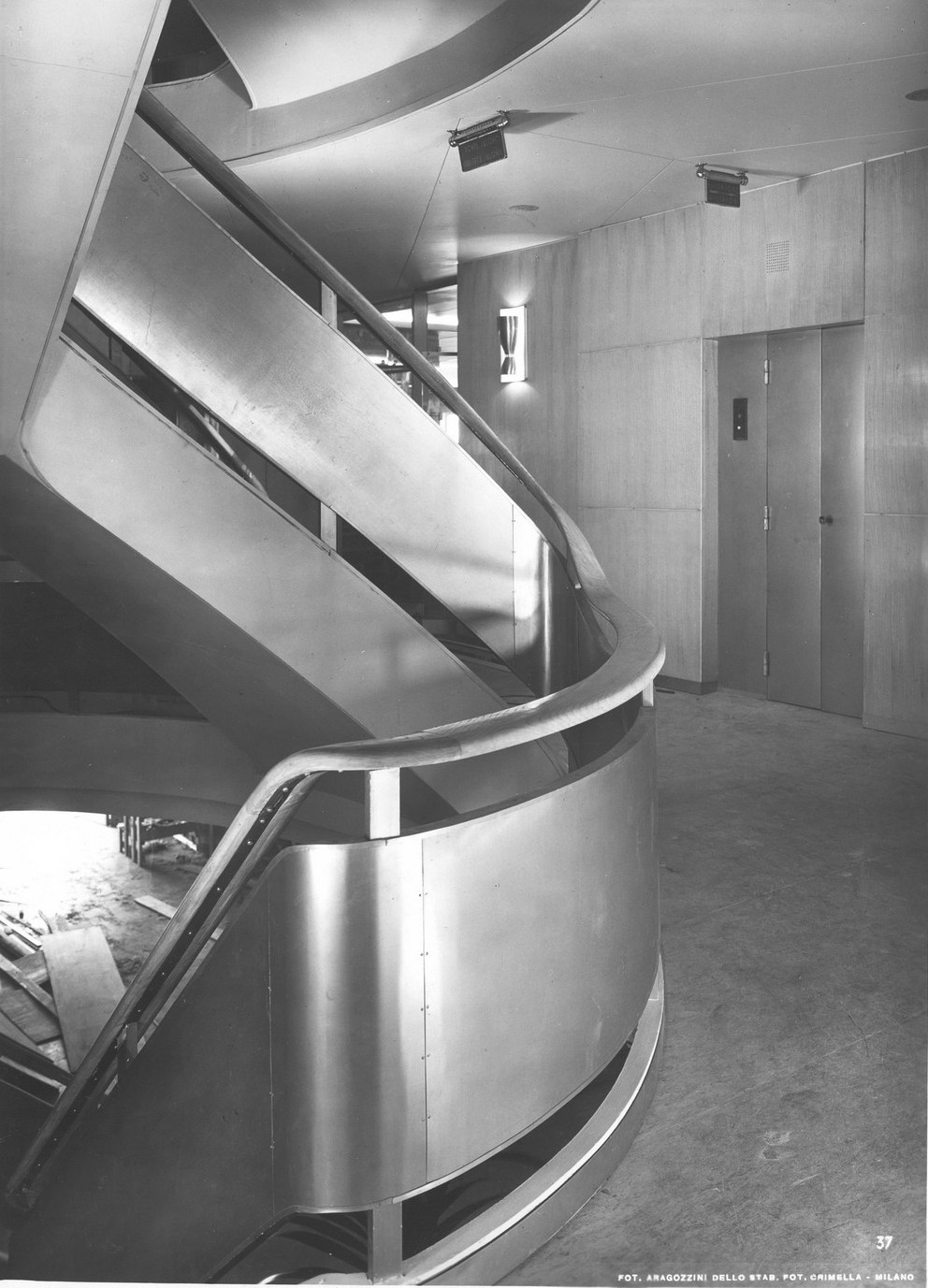 Il progetto di Ponti e Zoncada era fondato sulla ricerca di unità tra ambienti, sulla sperimentazione di nuovi materiali e sull’indagine di nuove fonti di illuminazione. I materiali impiegati sono numerosissimi e all’avanguardia: alluminio anodizzato oro e argento, bronzo, gomma, linoleum e legni vari.