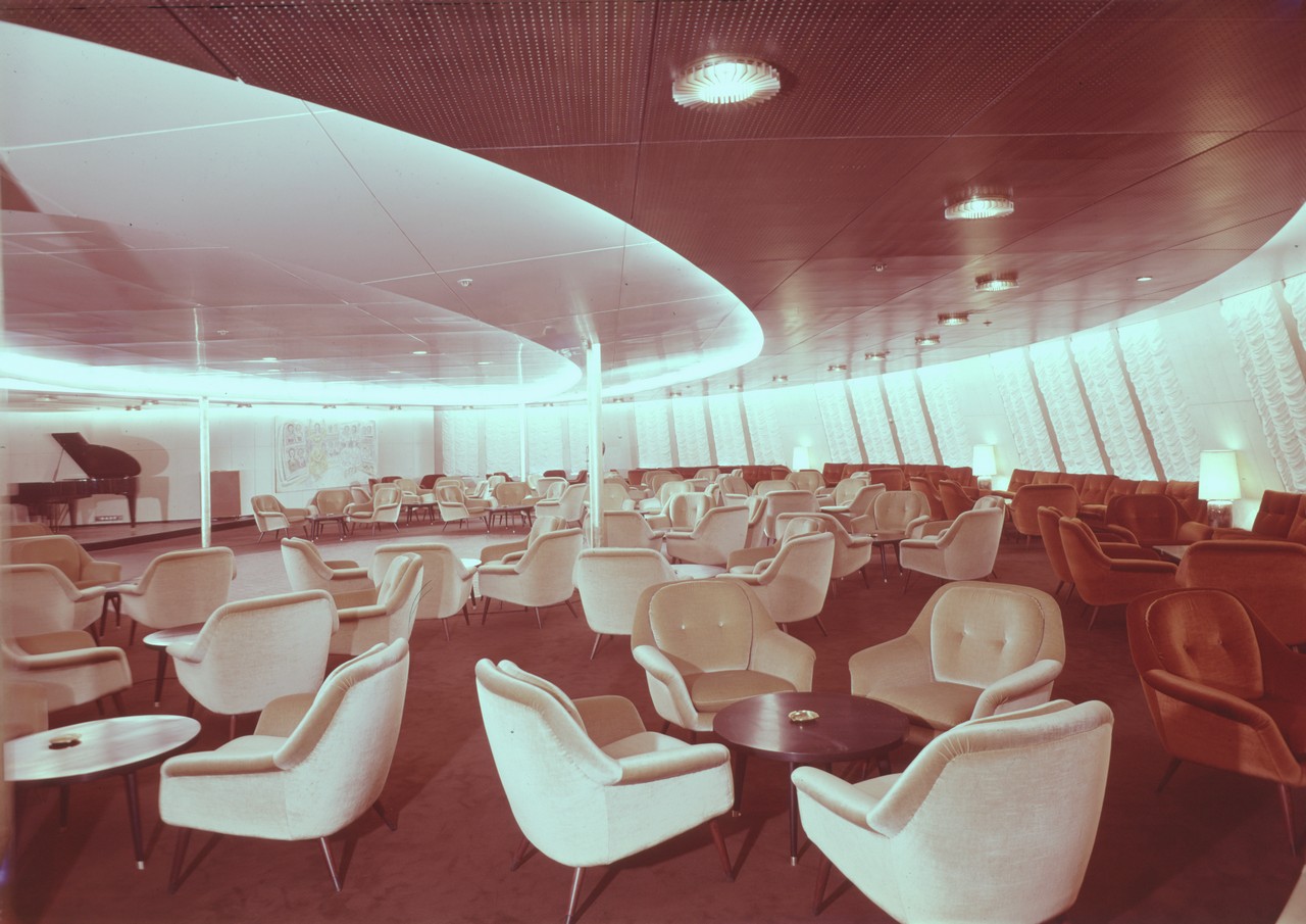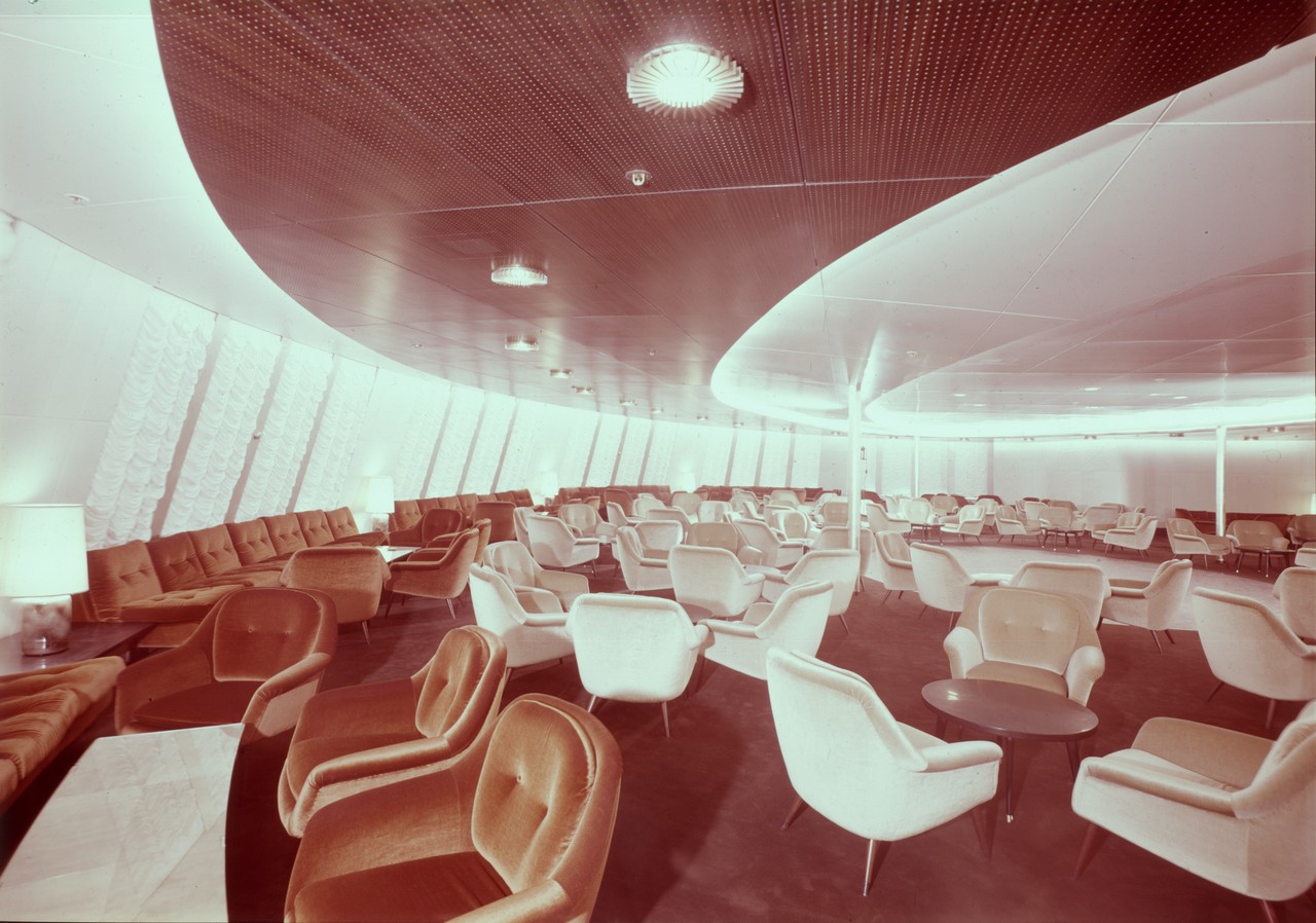 Il progetto di Zoncada si basava sulla continuità decorativa, tutti i saloni furono realizzati su una precisa gamma cromatica in accordo con il nome delle sale: Ambra, Opale, Rubino e Turchese. Il locale più importante era la sala delle feste di prima classe (Ambra) che seguiva lo sviluppo curvo del frontale della nave, arredata con poltrone di velluto color ambra e beige, il pavimento era rivestito in moquette in lana color marrone testa di moro mentre sulle pareti erano esposte due opere su tela di Massimo Campigli. Per tutti gli altri saloni, Zoncada si affidò ad artisti con cui aveva consolidata esperienza: Massimo Campigli e i genovesi: Emanuele Luzzati, Oscar Saccorotti, Giovanni Solari, Luigi Spacal, Enrico Paulucci, Pino Casarini e Ferruccio Quaia.