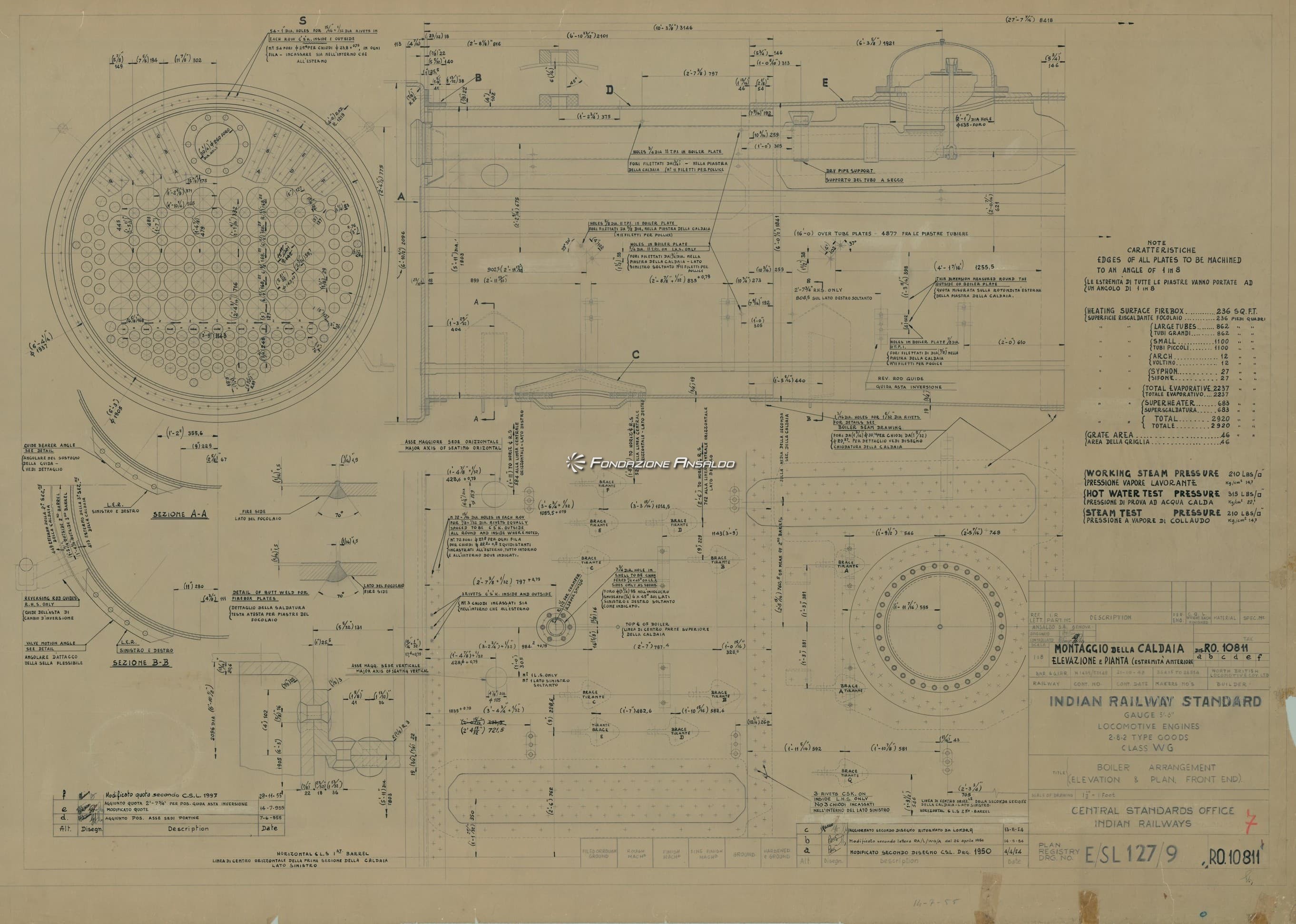 Locomotive indiane 2-8-2 classe WG - Montaggio della caldaia - Elevazione e pianta