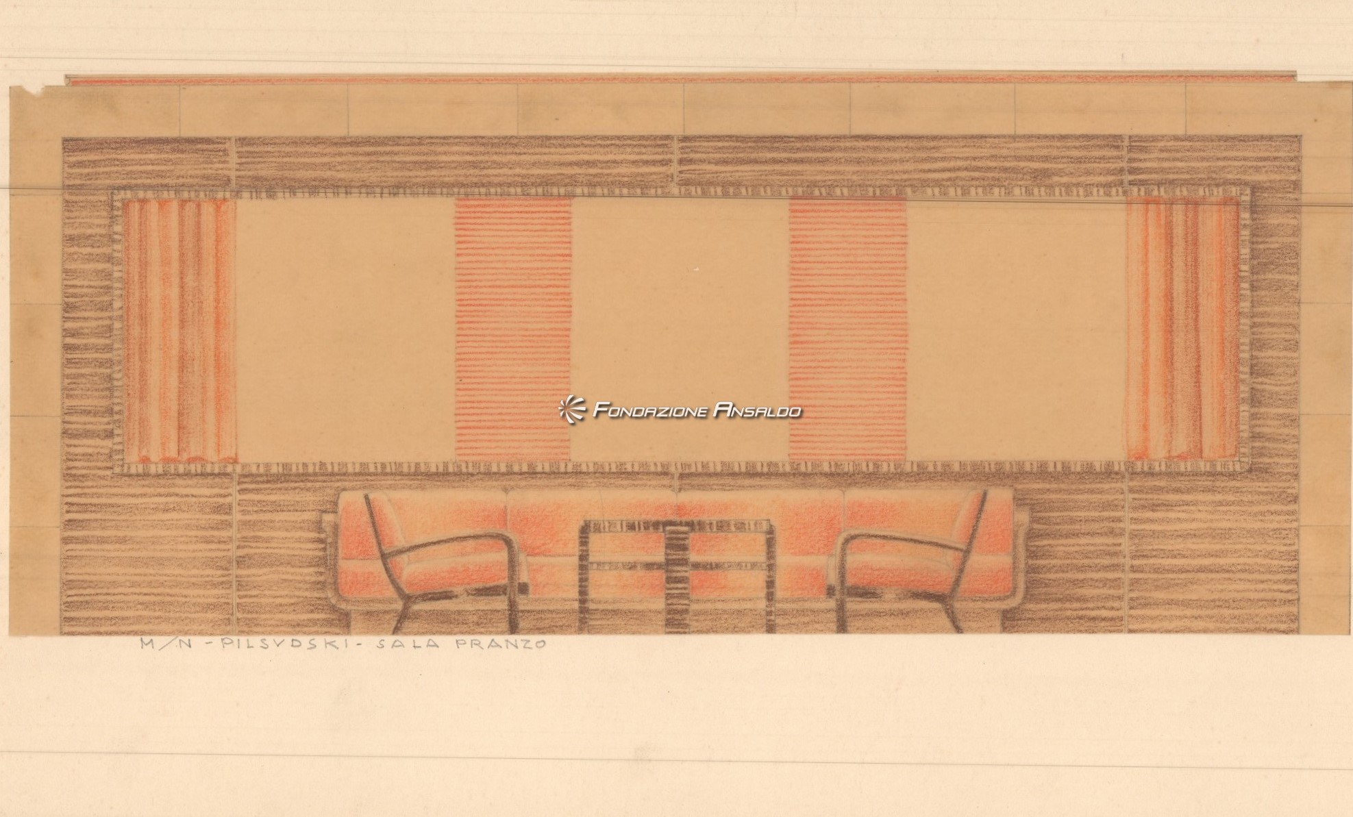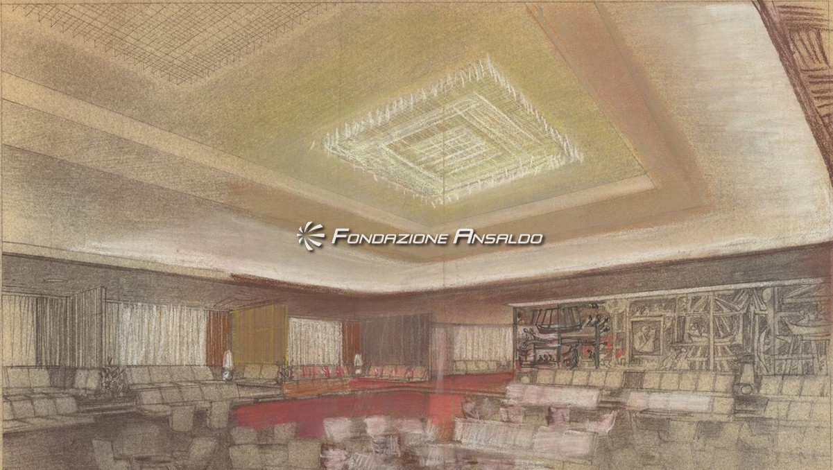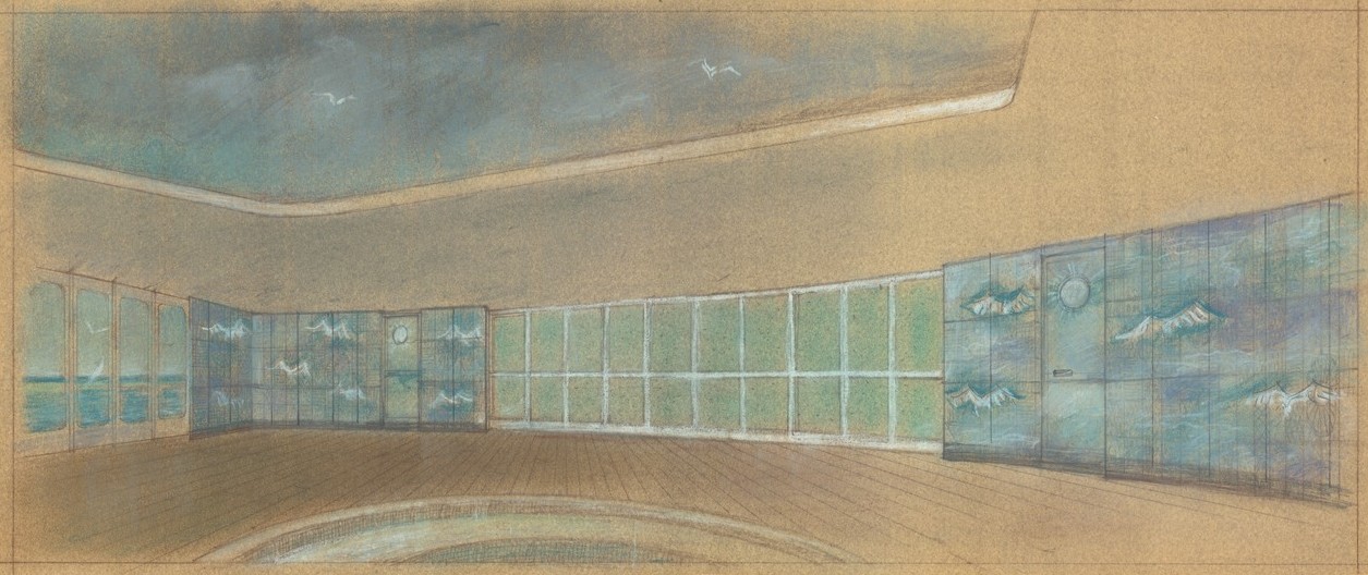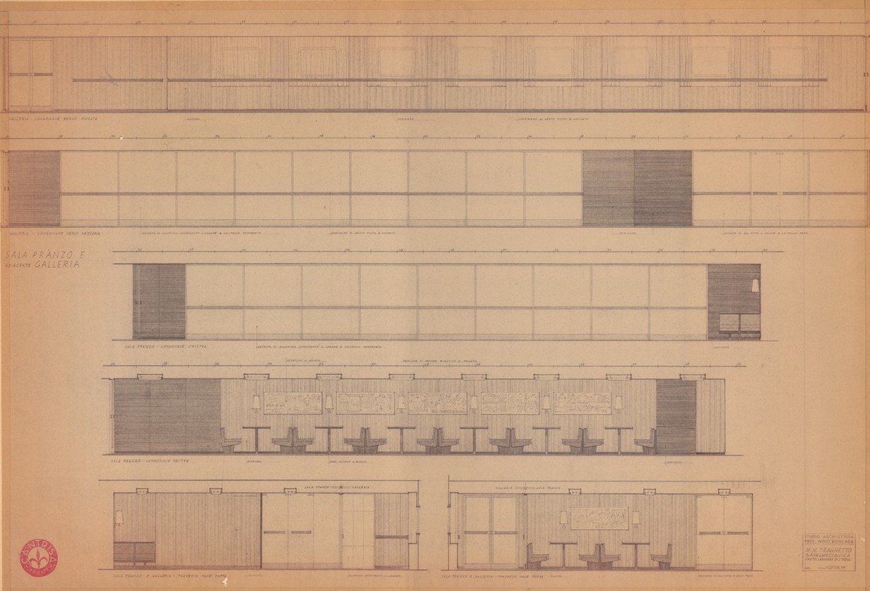 Traghetto Navalmeccanica - Progetto della sala da pranzo e adiacente galleria