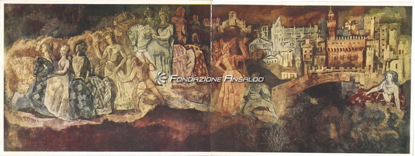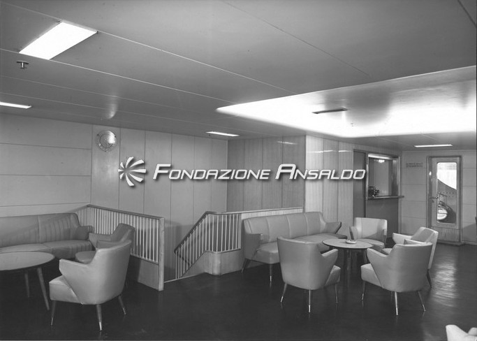 La motonave vantava due lavori di Giovanni Majoli, che adornavano sia la parete sul lato sinistro all’ingresso della sala, rivestita su disegno del pittore in mosaico e il dipinto che rivestiva totalmente la parete di poppa con rappresentazioni che richiamavano l’architettura di Venezia.