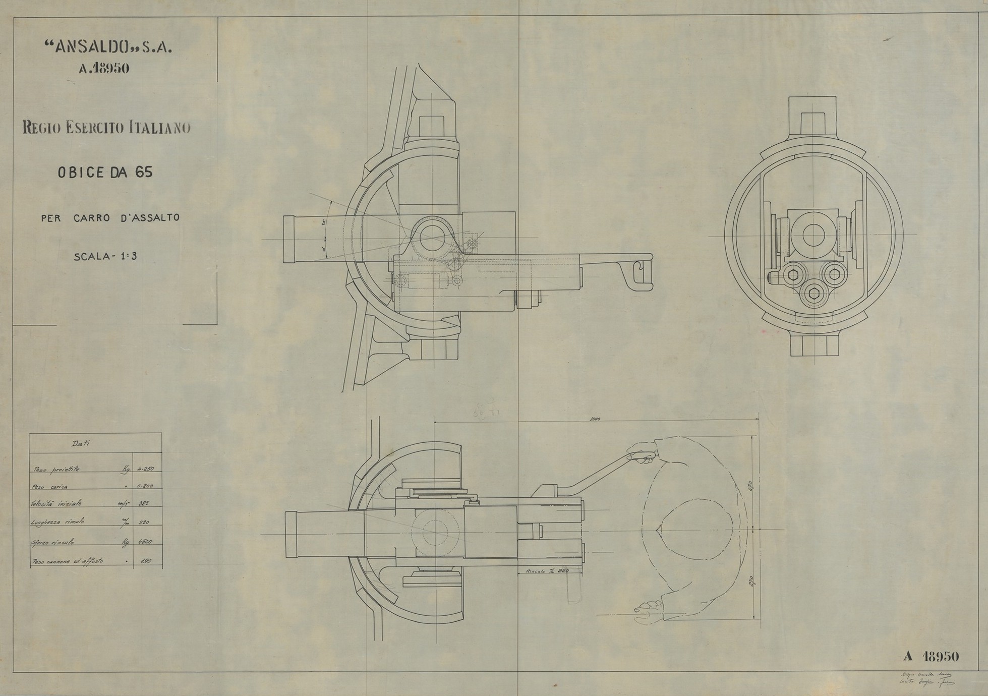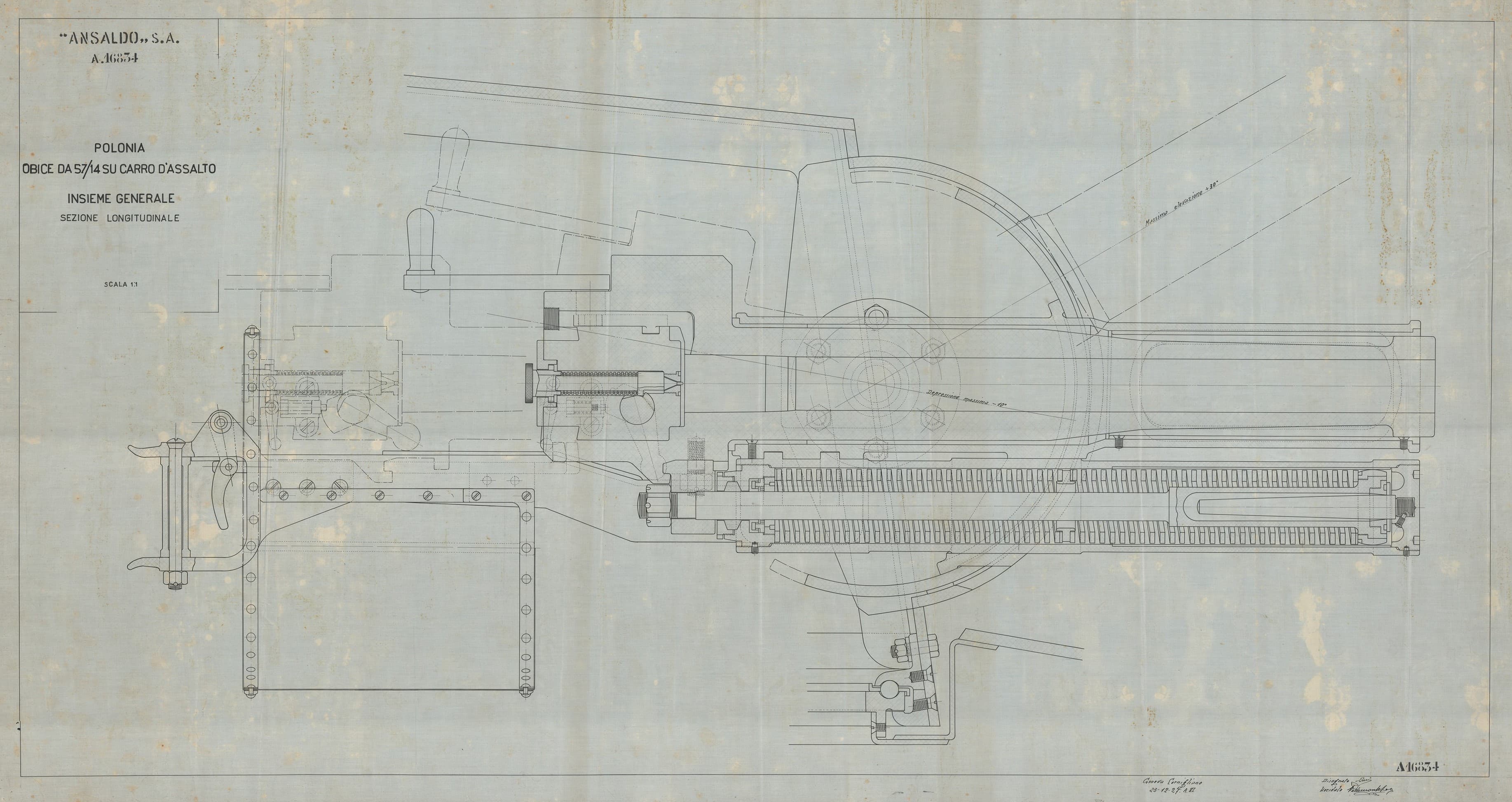Una tra le armi da fuoco più famose prodotte dall'Ansaldo fu l’obice da 75/18 mod. 34 che vide largo impiego durante la seconda guerra mondiale. Era pensato per essere trainato dai muli o trattori d’artiglieria e in versioni appositamente modificate è stato anche impiegato nei semoventi d’artiglieria della M prodotti da Ansaldo-Fossati. Erano stati prodotti anche obici di grosso calibro come l’obice da 210/22 mod 1935, capace di sparare un granata esplosiva dal peso di oltre 100 kg anche a 15 km di distanza.