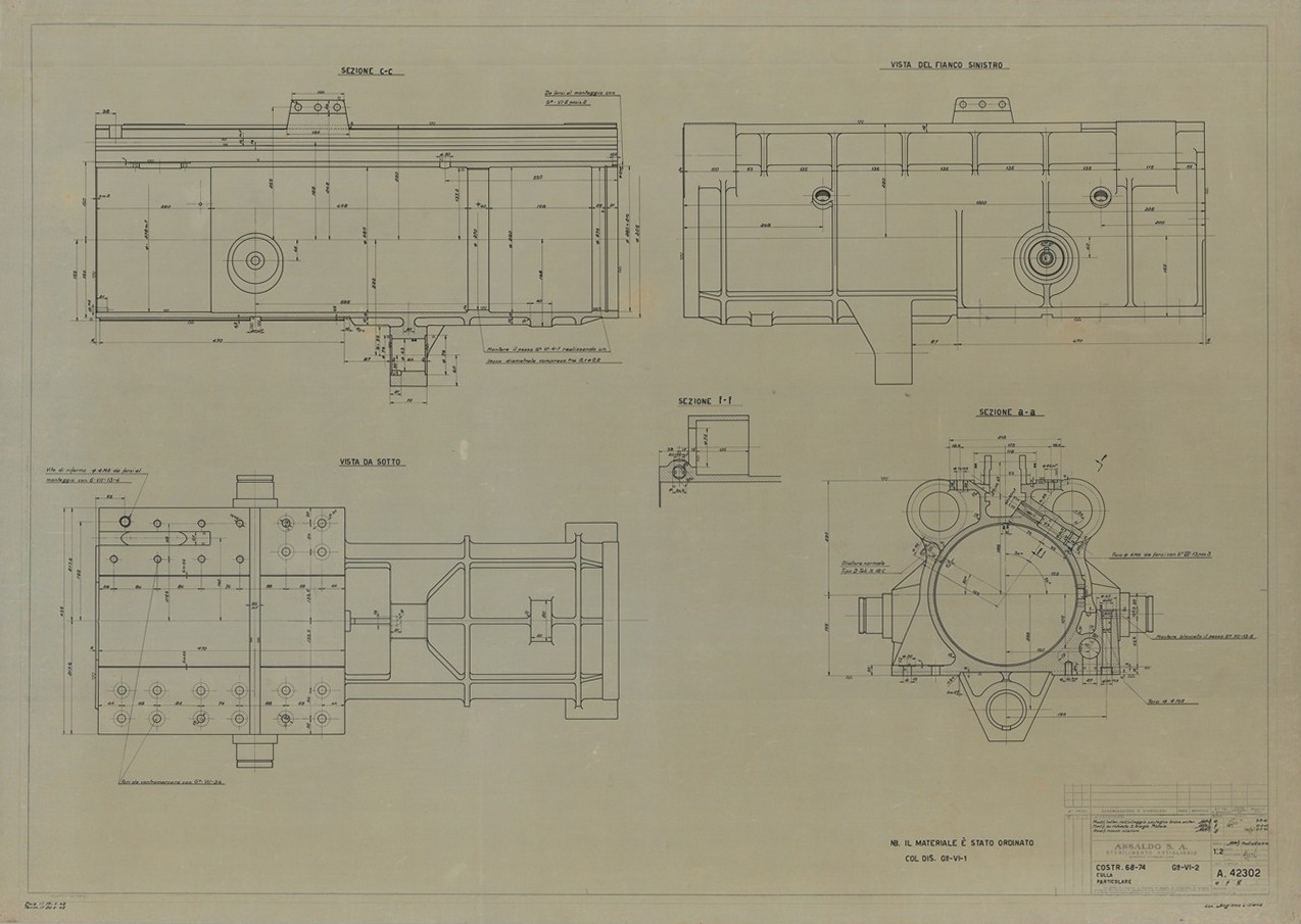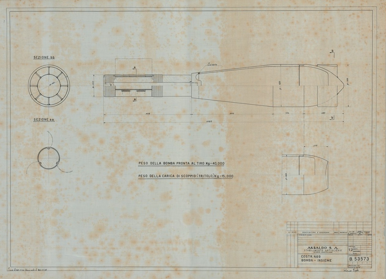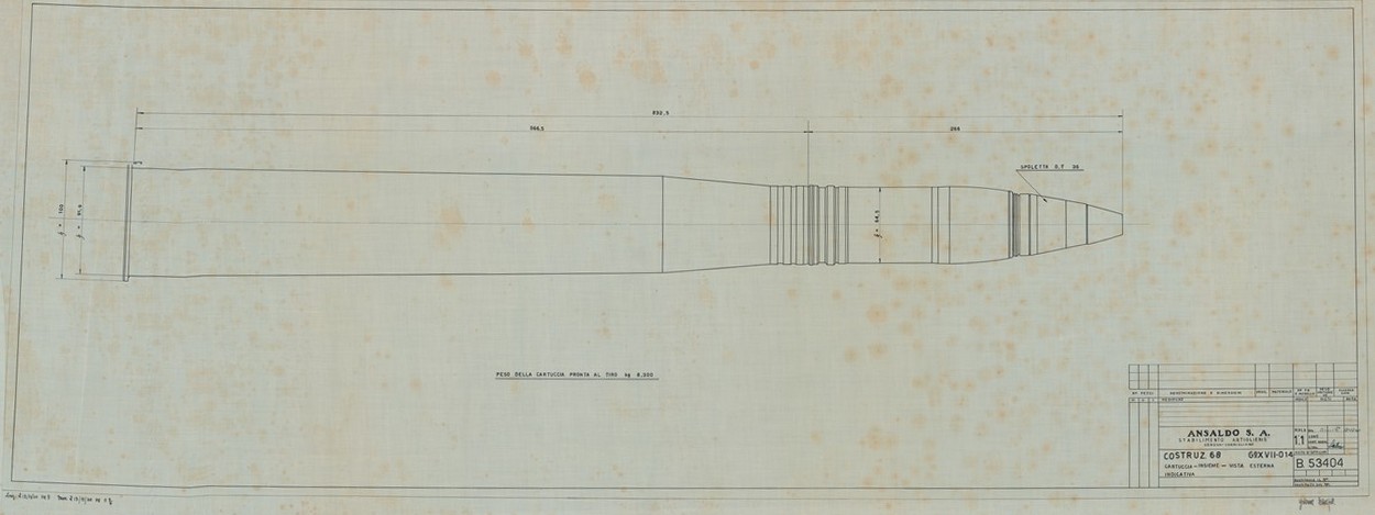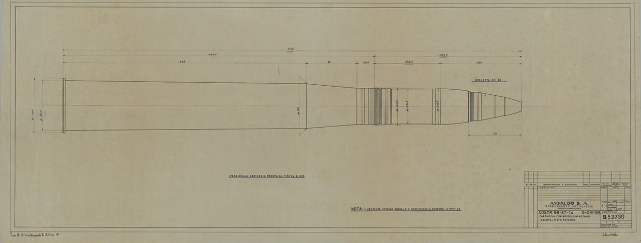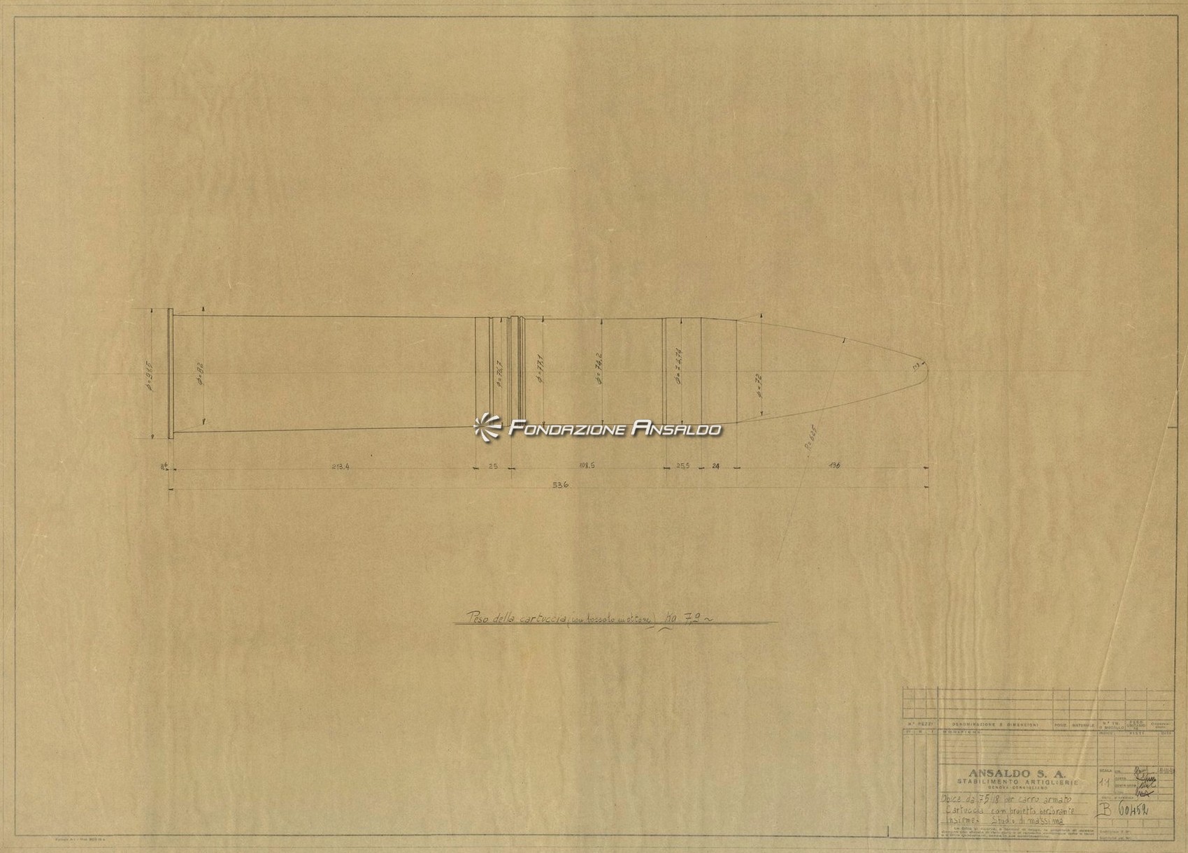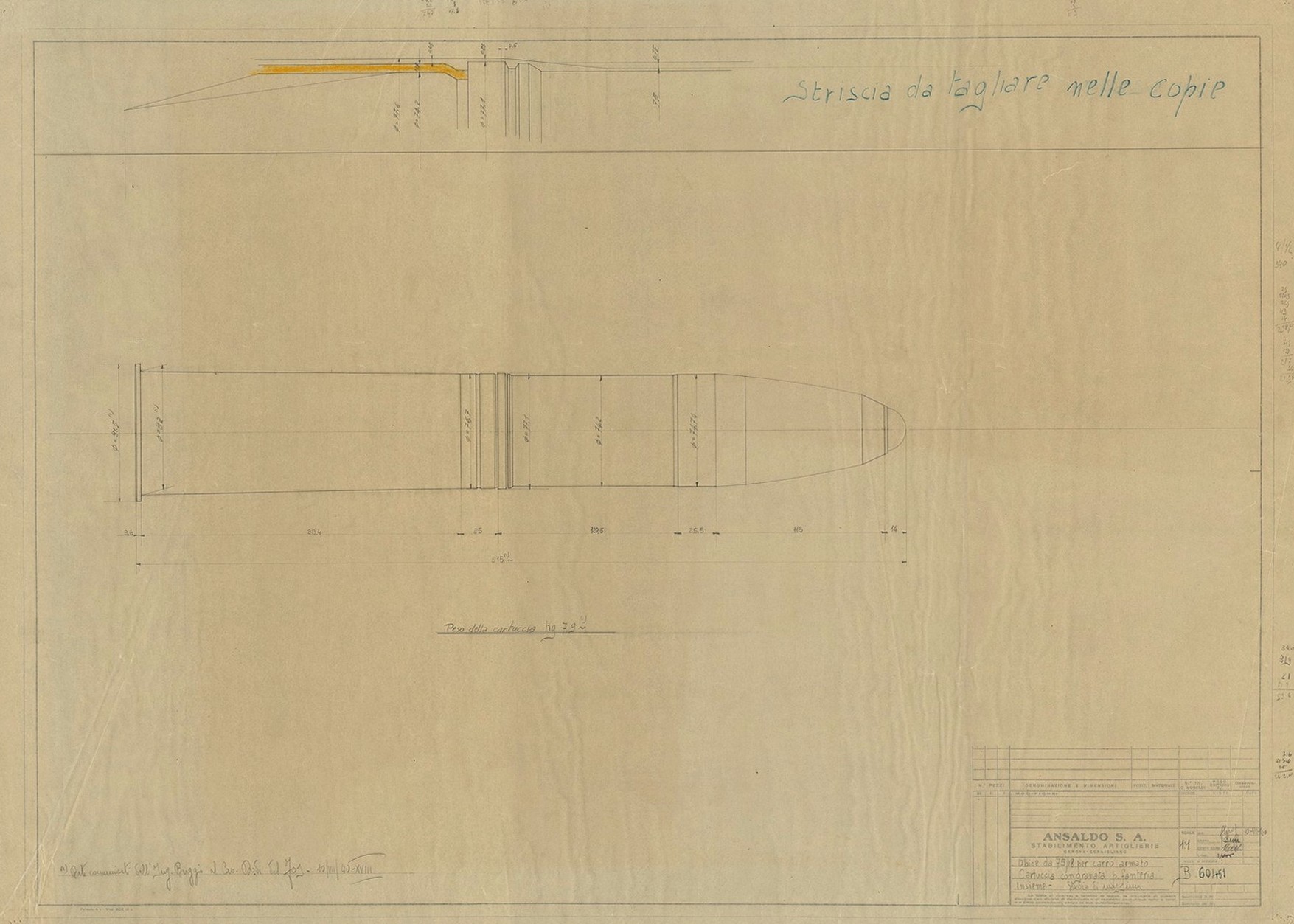 Mortaio da 305/10 M. 16 Skoda - tracciato sbozzati bocca da fuoco