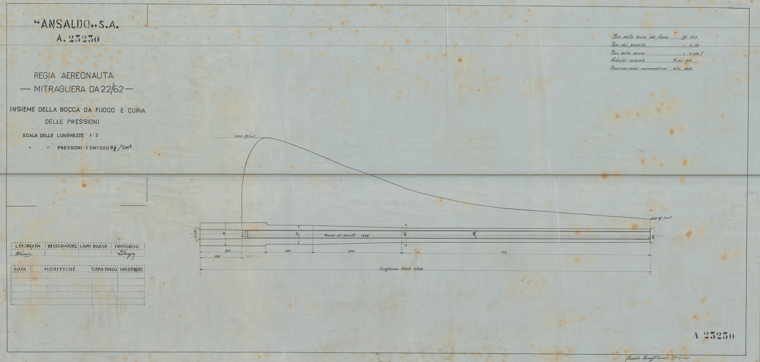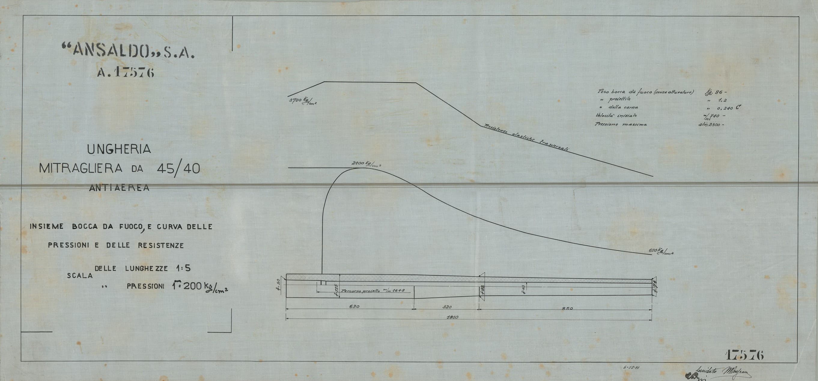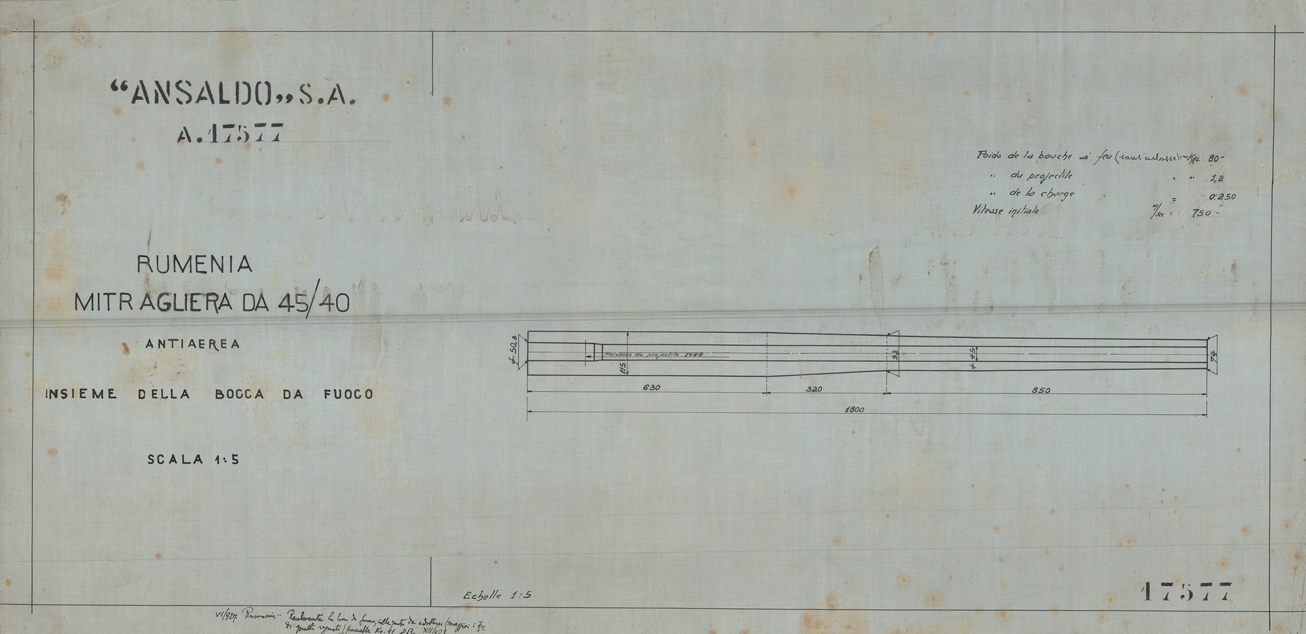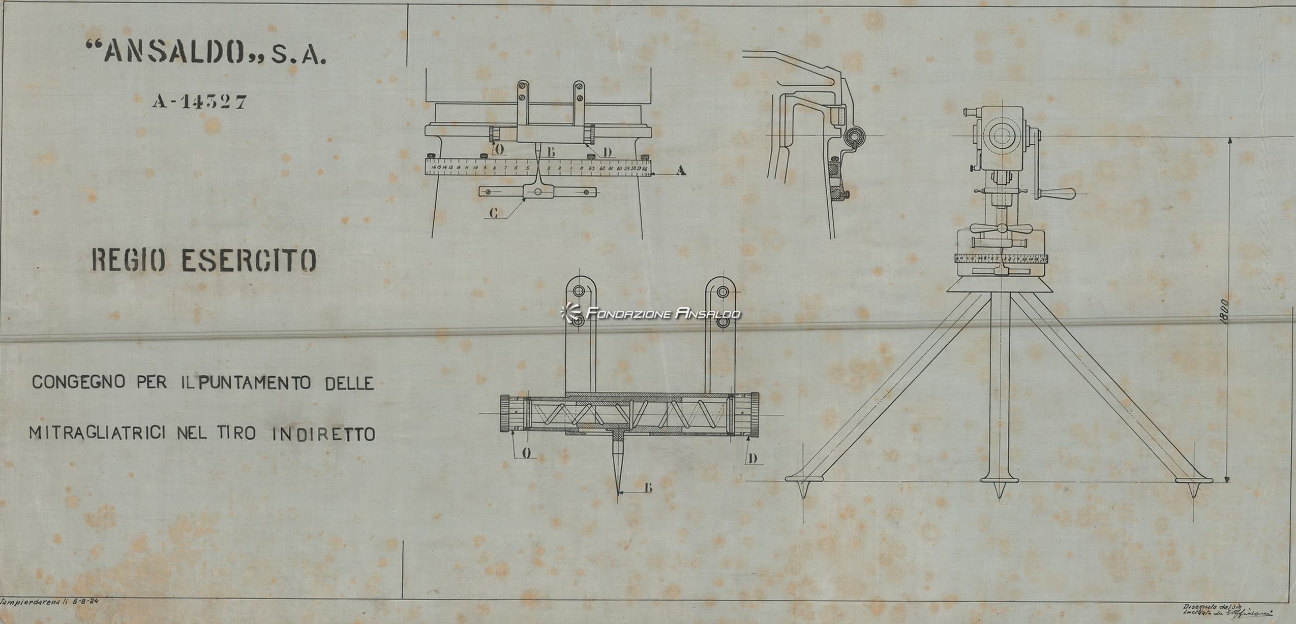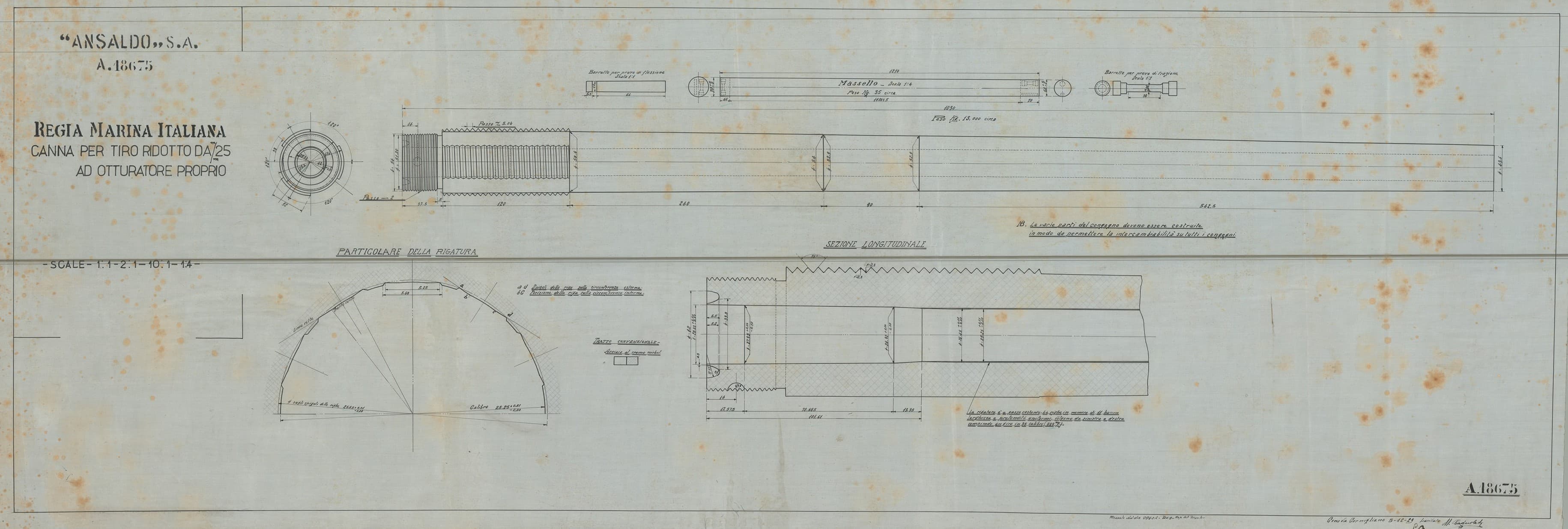 Tra i disegni conservati sono presenti quelli di una mitragliera sperimentale di grosso calibro con caricatore da 6 colpi e denominata “Tipo A”. Stono stati rinvenuti anche lucidi di mitragliatrici Maxim, Colt e Fiat.