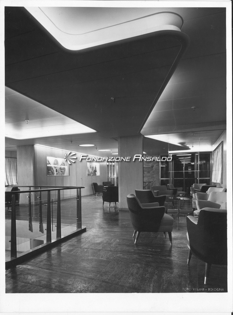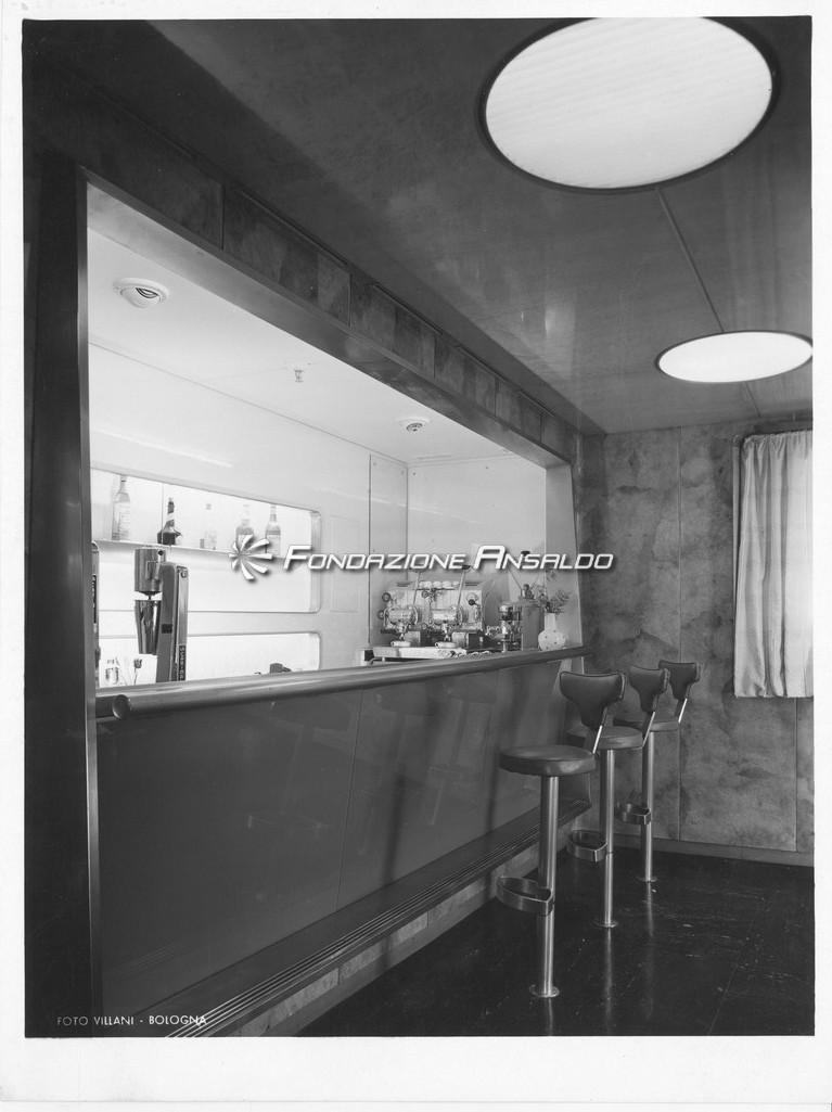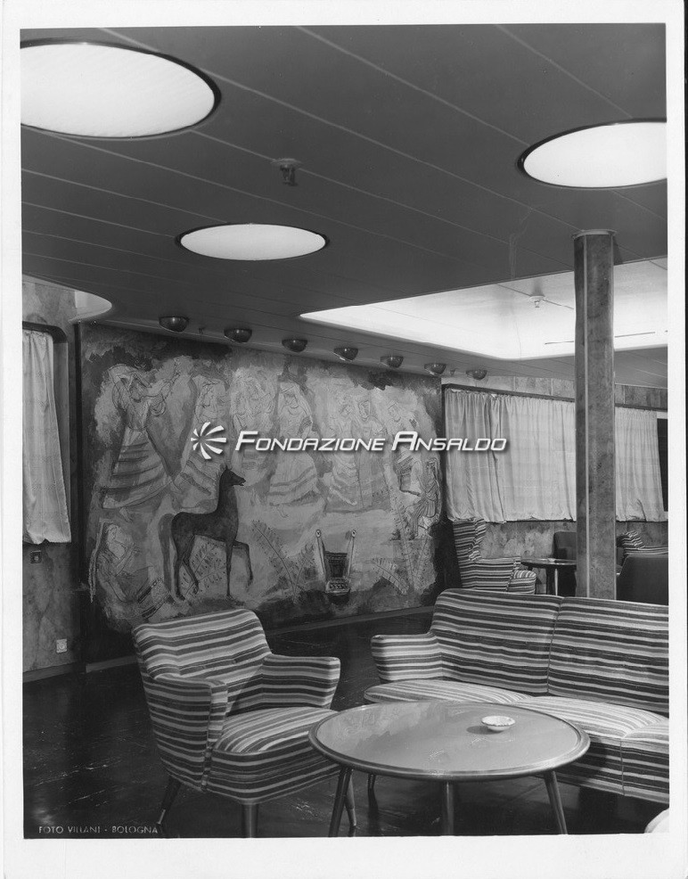 La prima classe disponeva sul ponte di passeggiata di una sala soggiorno con annesso un bar, le pareti furono realizzate in radica di noce arricchite da un pannello dipinto su tela da Giovanni Majoli, dello stesso artista è il mosaico dal titolo: “La fondazione di Roma” fatto in collaborazione con la ditta veneziana Gregorini che dominava la parete dello scalone; sempre di Majoli era il dipinto a tema monumenti del Lazio. I pannelli della sala lettura e scrittura portavano la firma di Piero Fornasetti, mentre la parete di fondo della sala da pranzo rappresentava il paesaggio laziale ed era a opera di Oscar Saccorotti.
