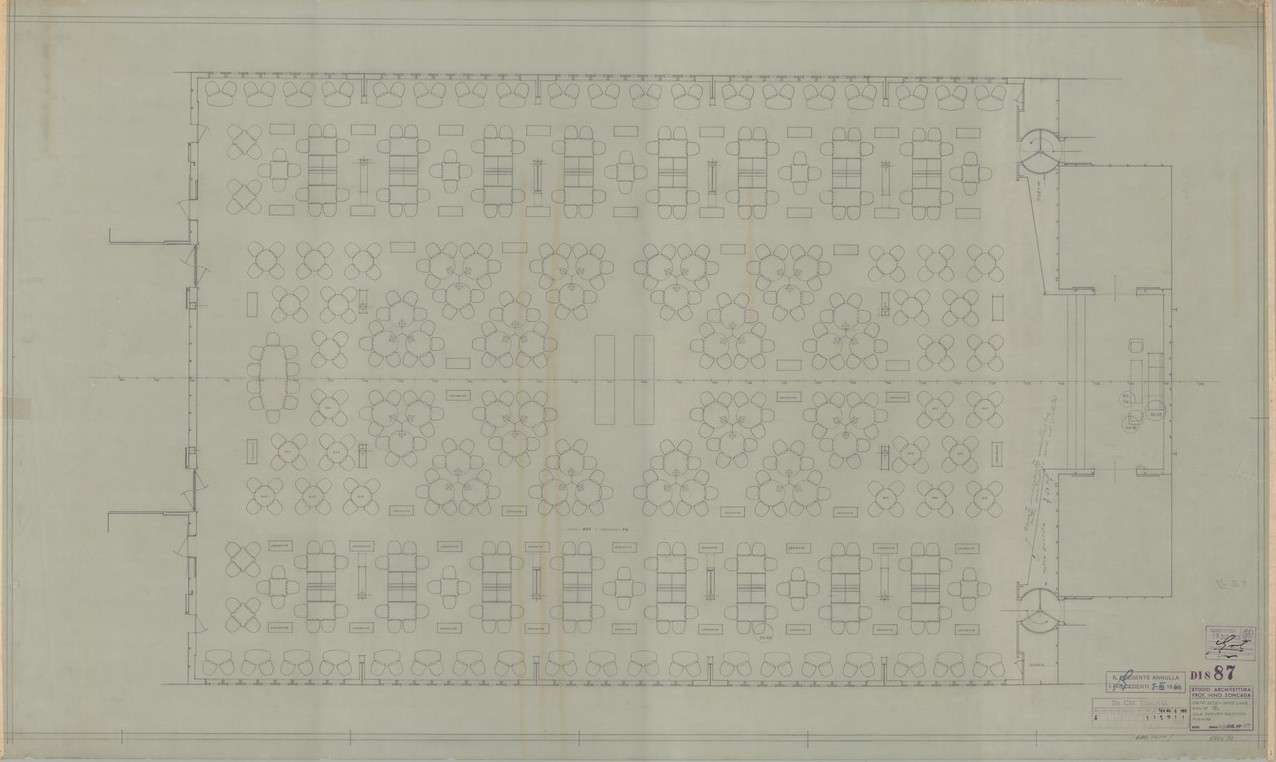 - Per il disegno tecnico relativo alla sistemazione della Sala da pranzo si veda: