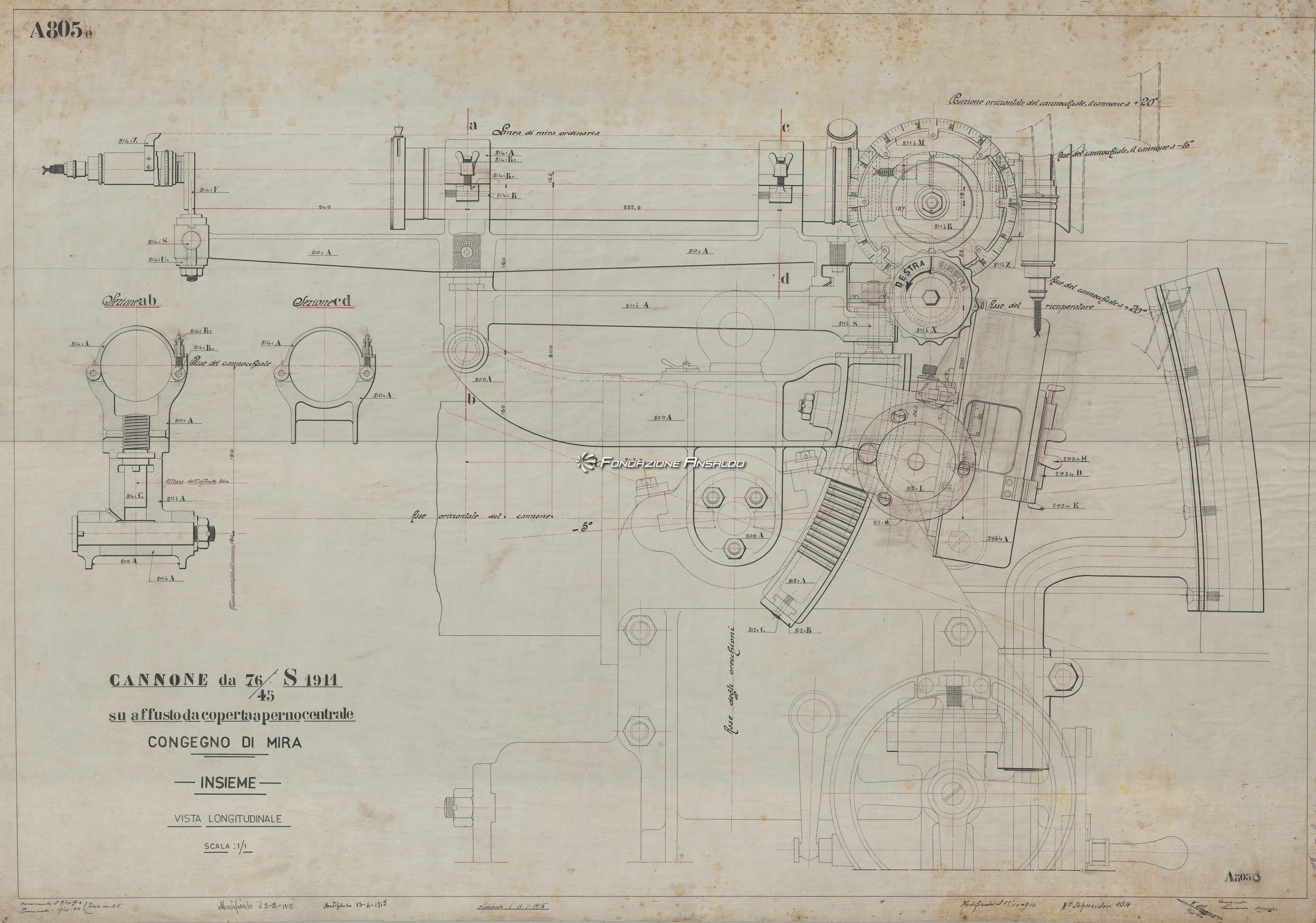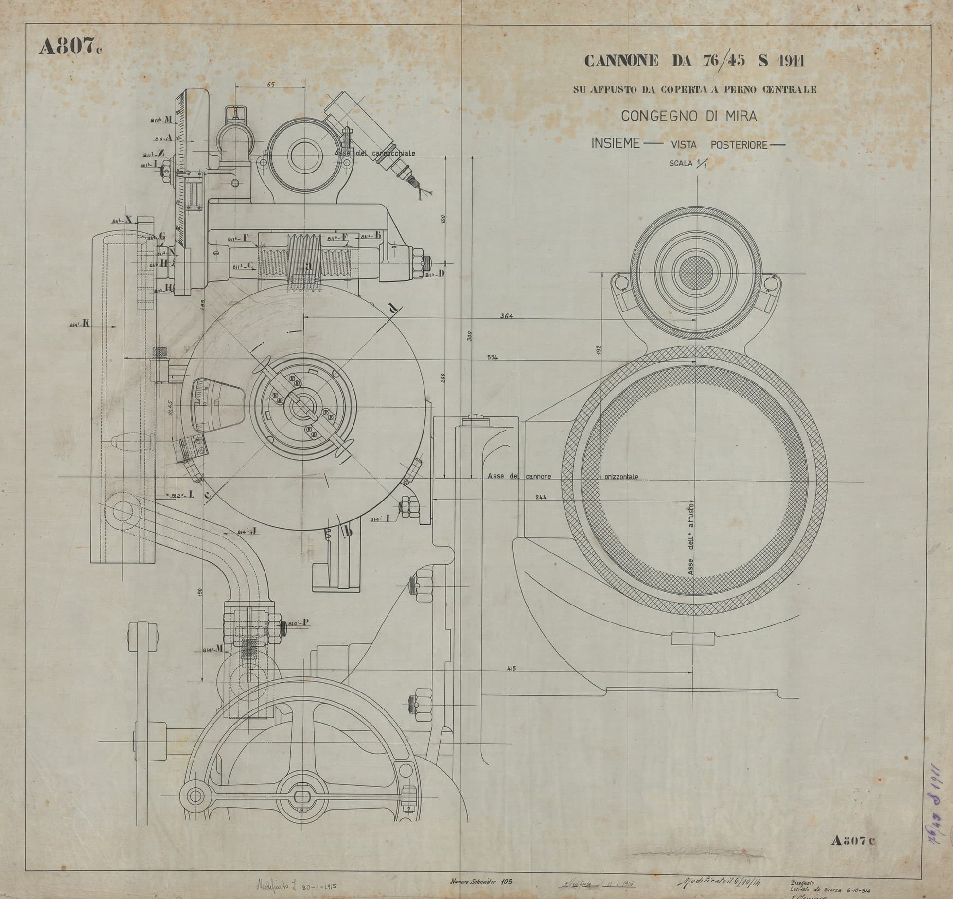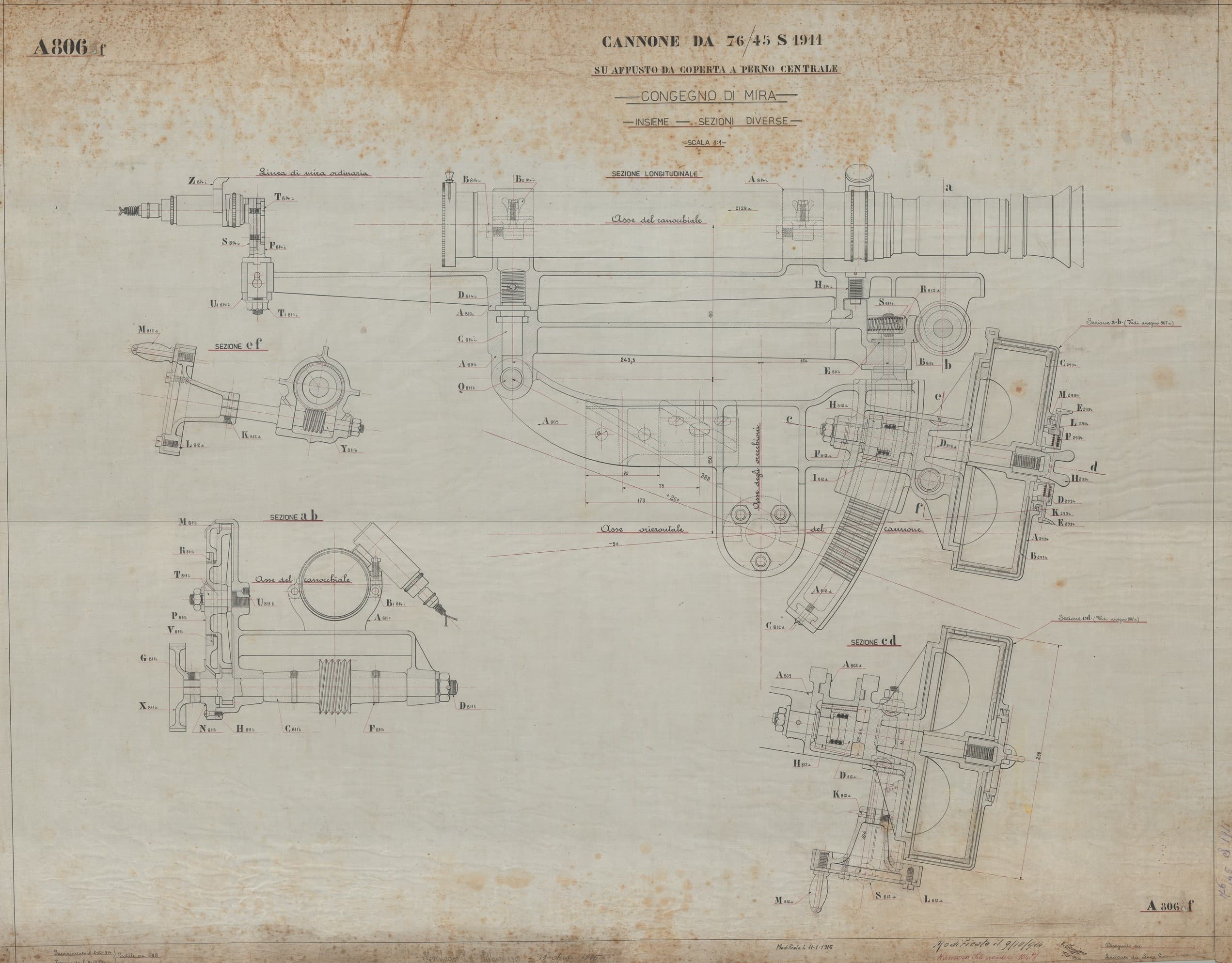 Cannone da 76/45 S 1911 - sezioni diverse del congegno di mira
