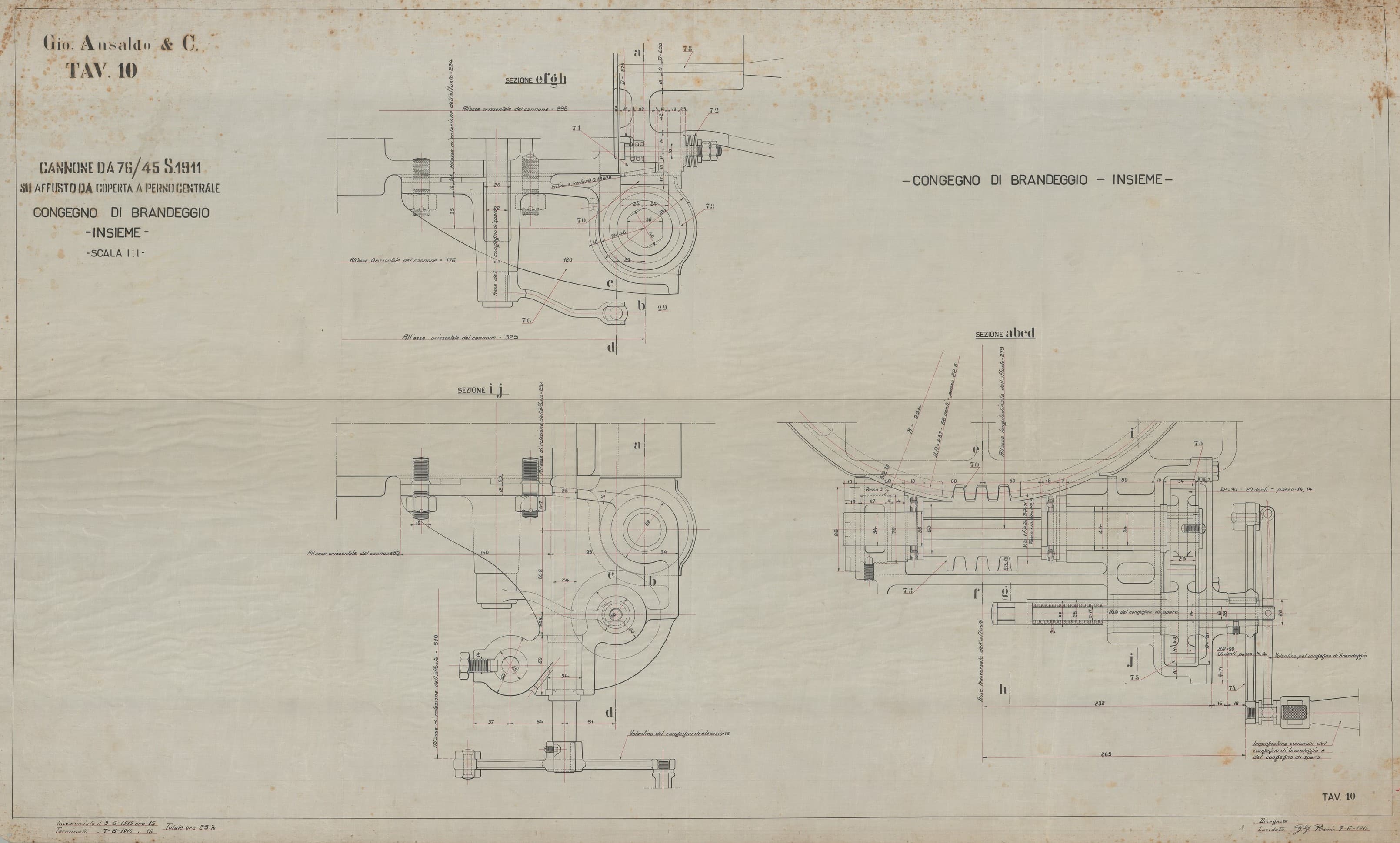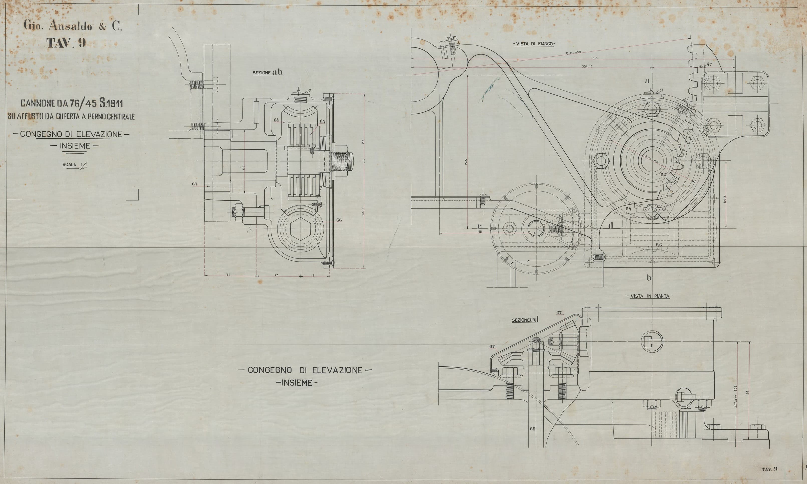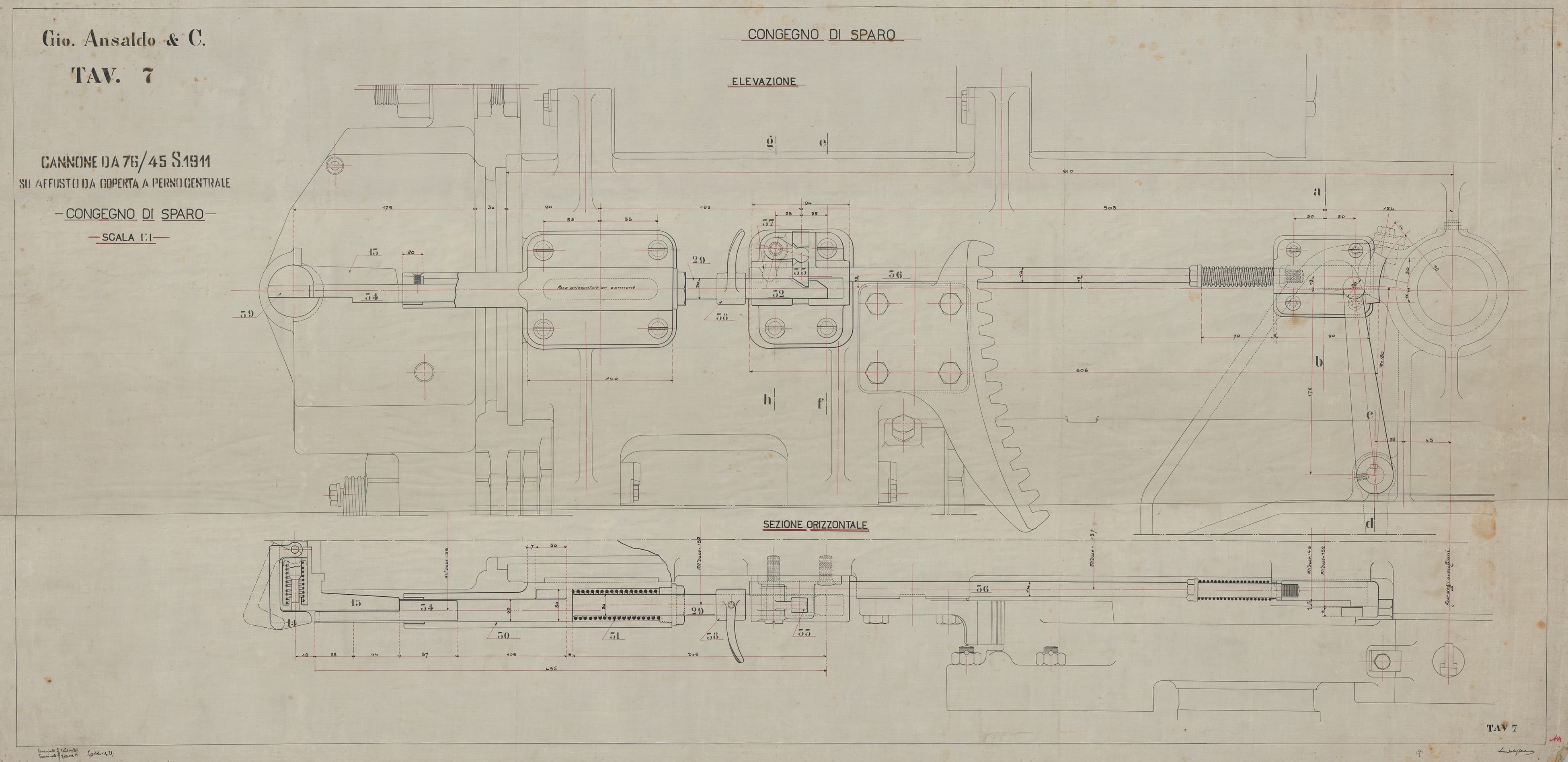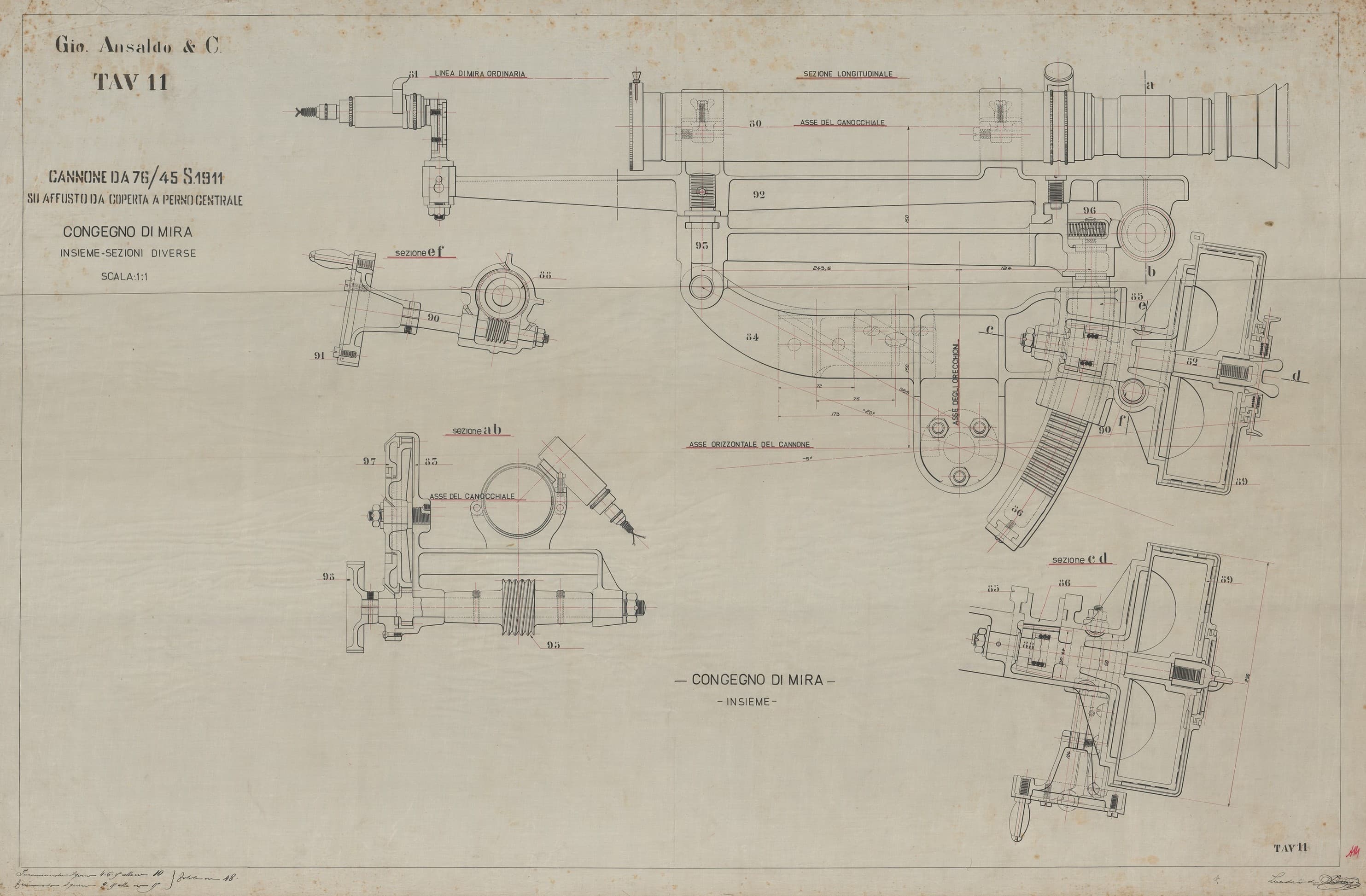 Cannone da 76/45 S 1911 - sezioni diverse del congegno di mira