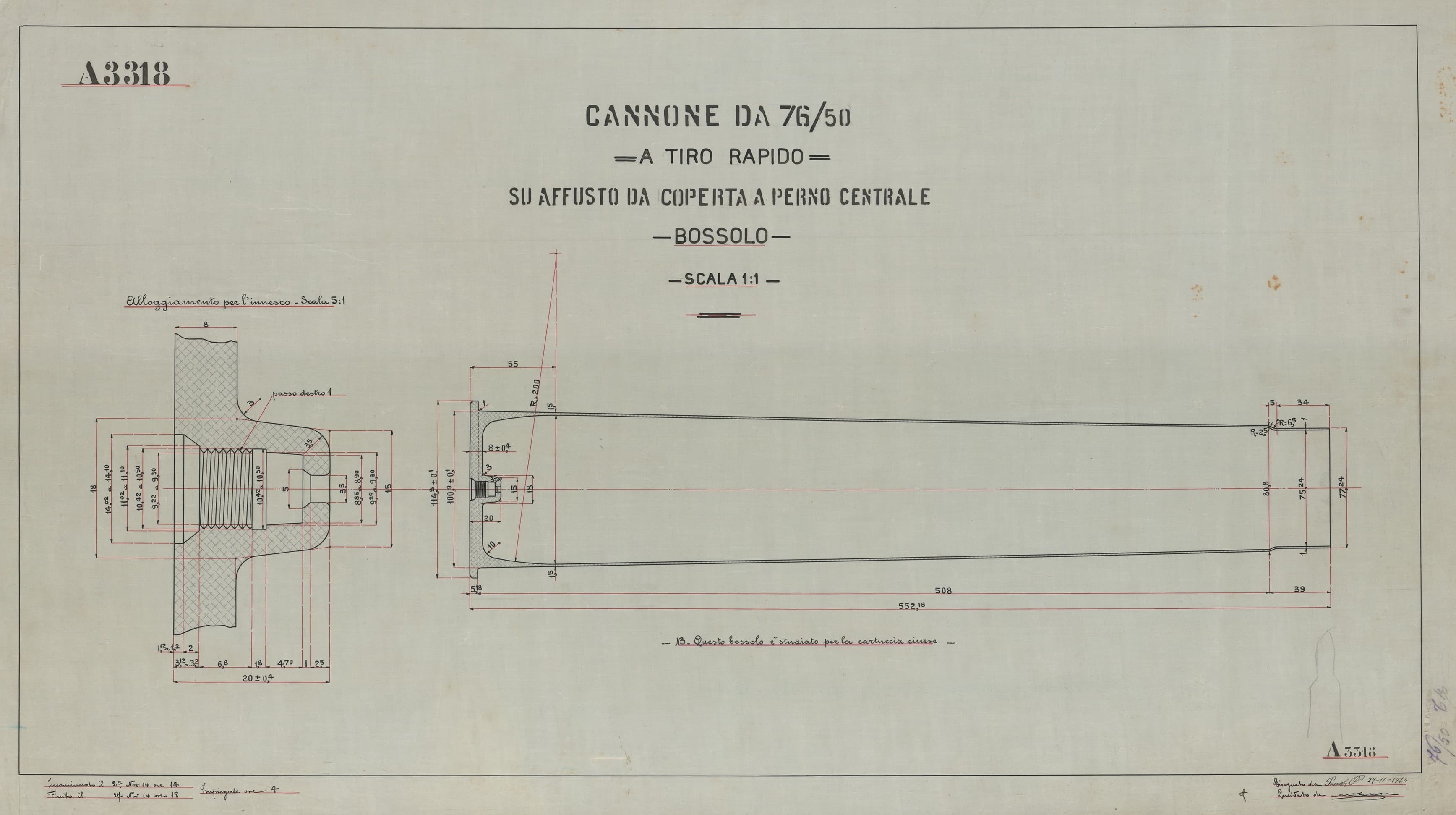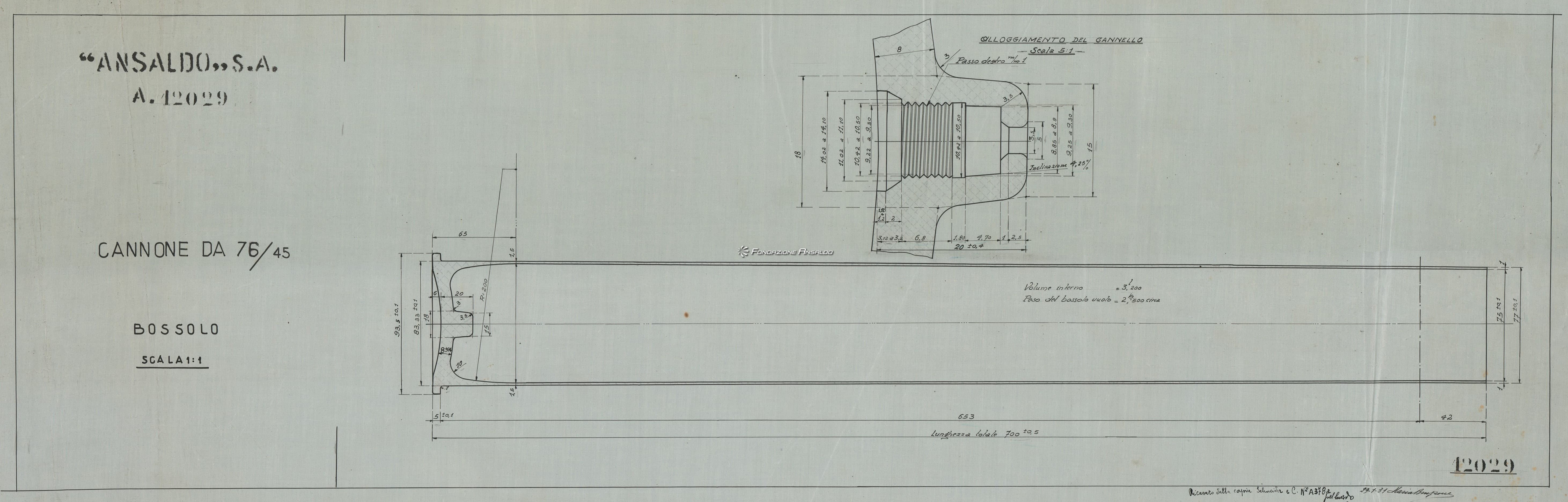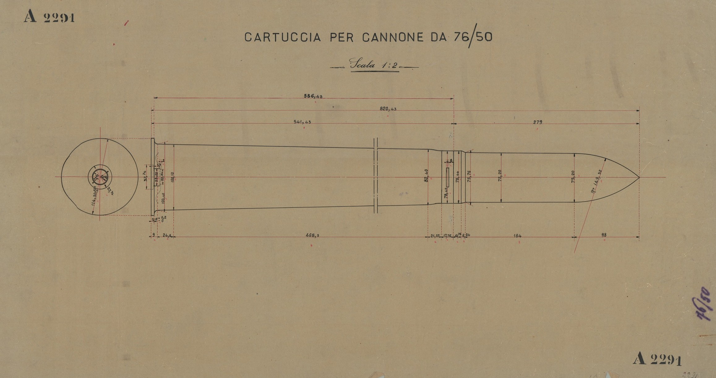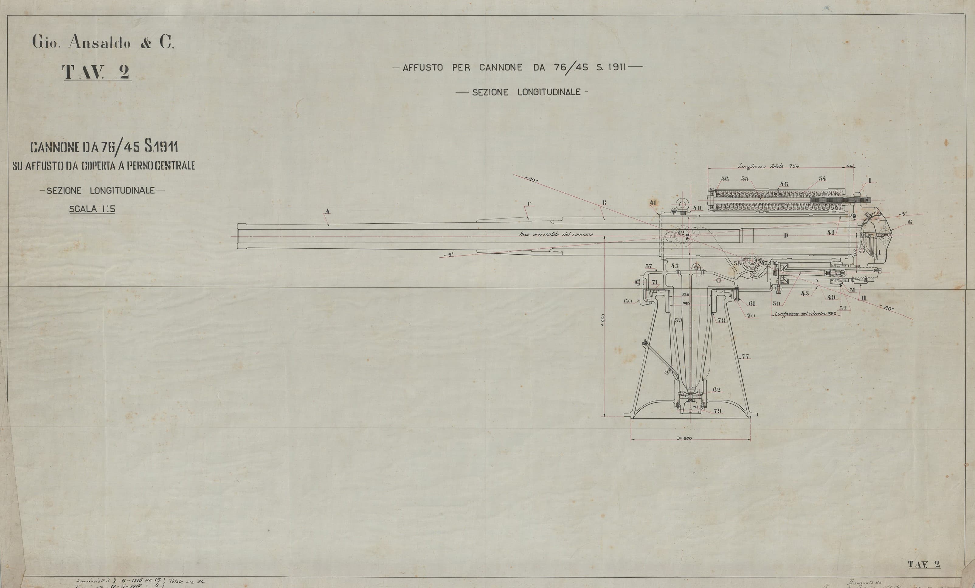 Cannone da 76/45 S 1911 - sezione longitudinale