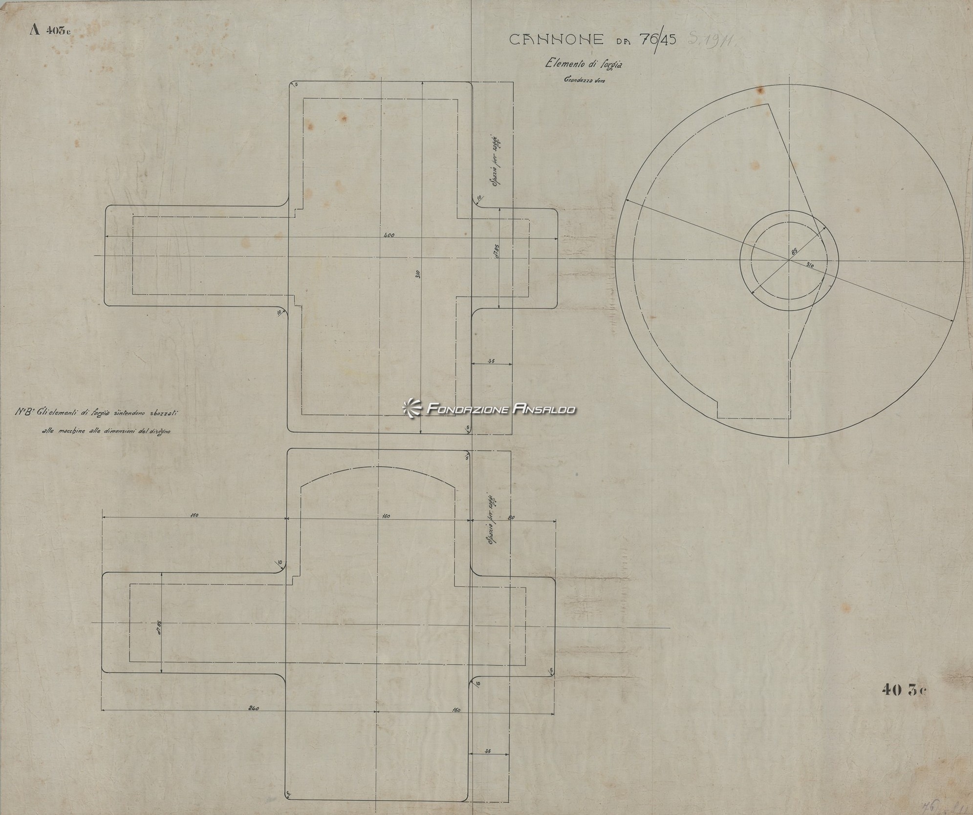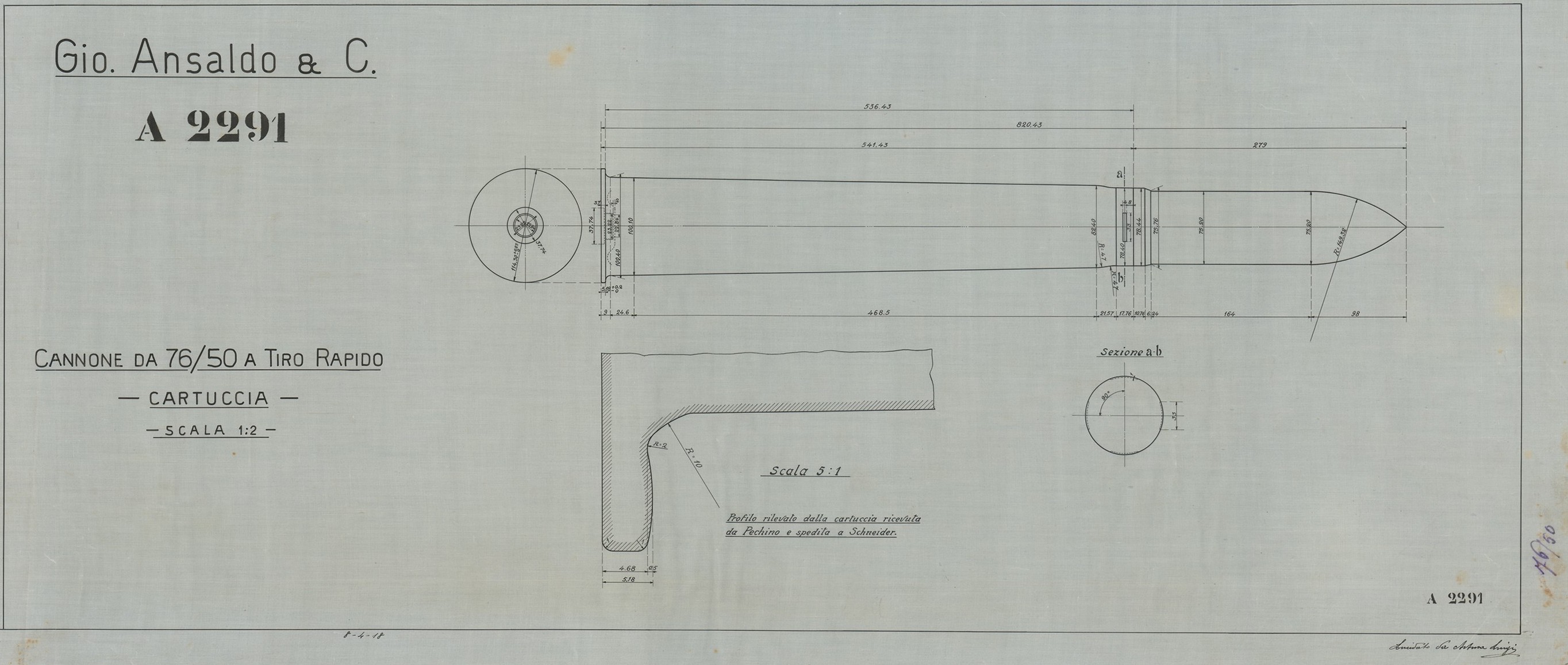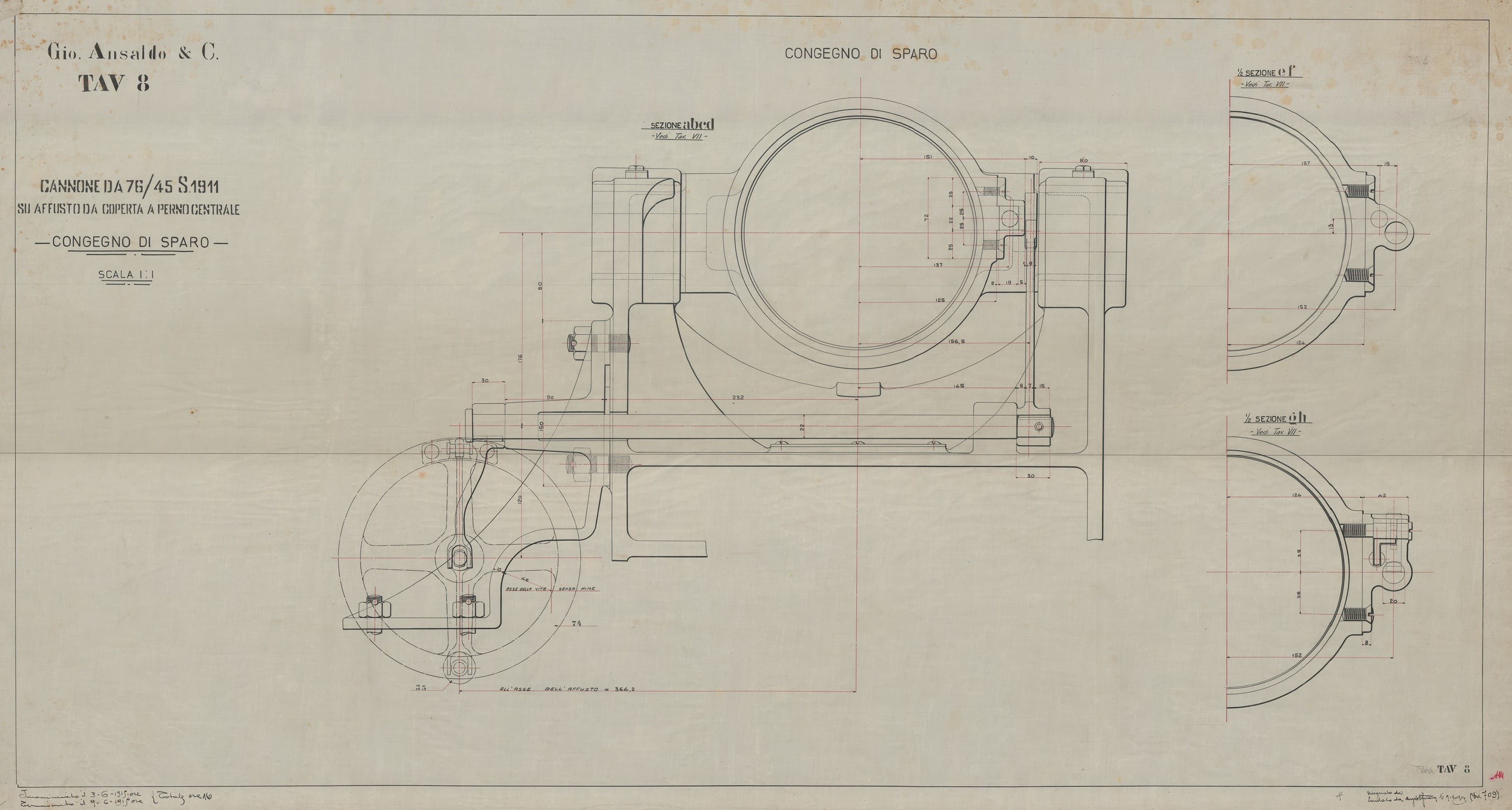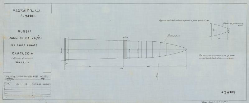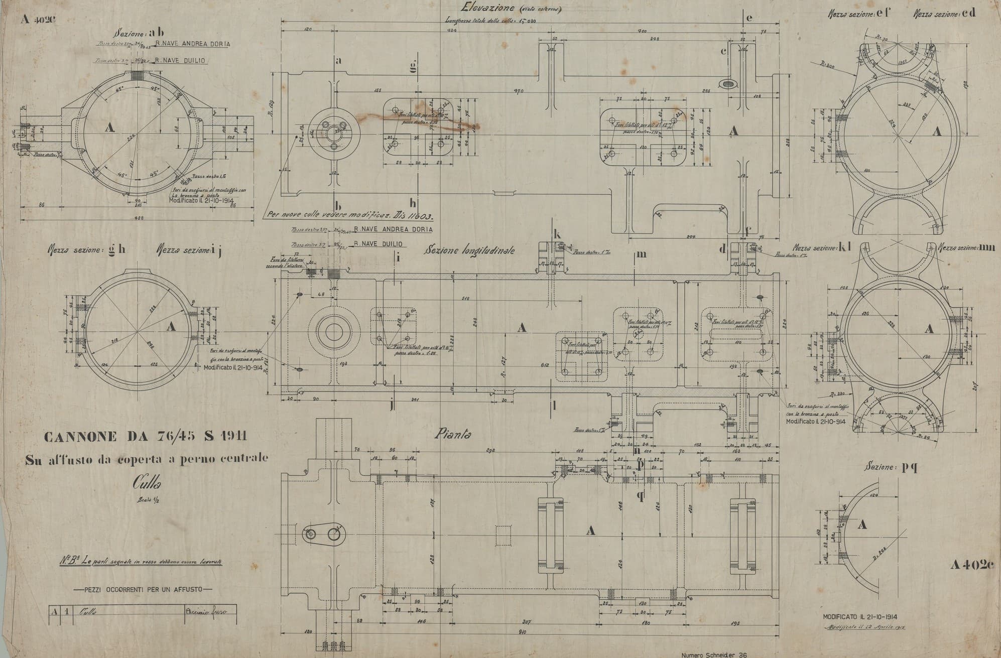 Cannone da 76/45 S 1911 - sezione longitudinale
