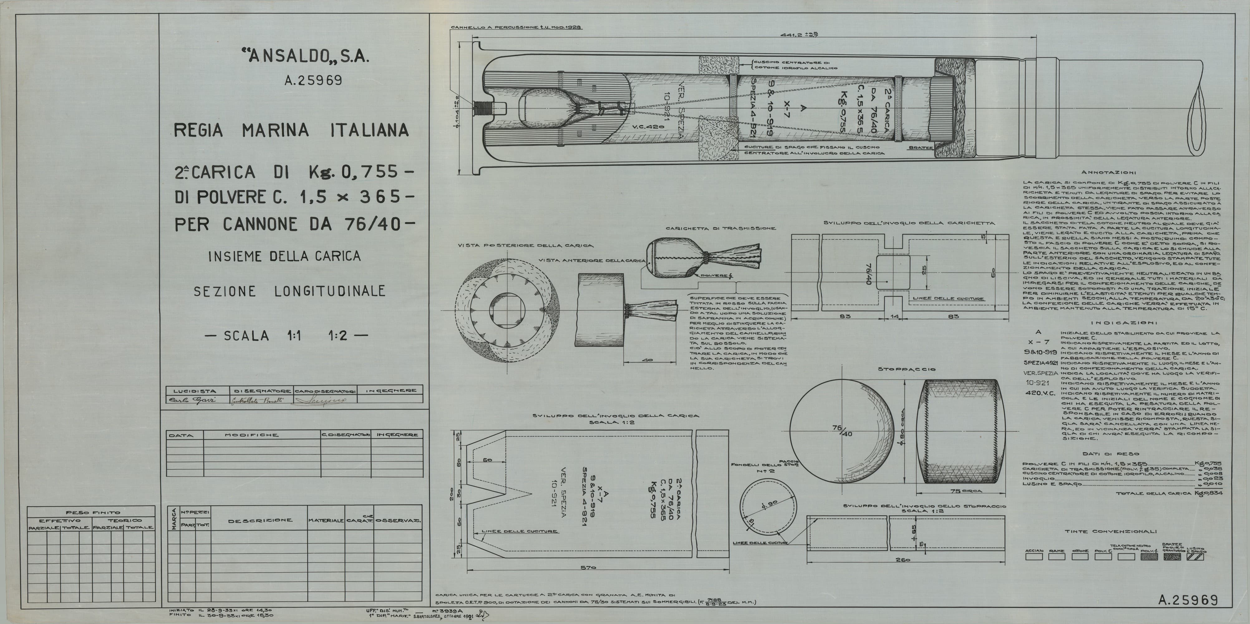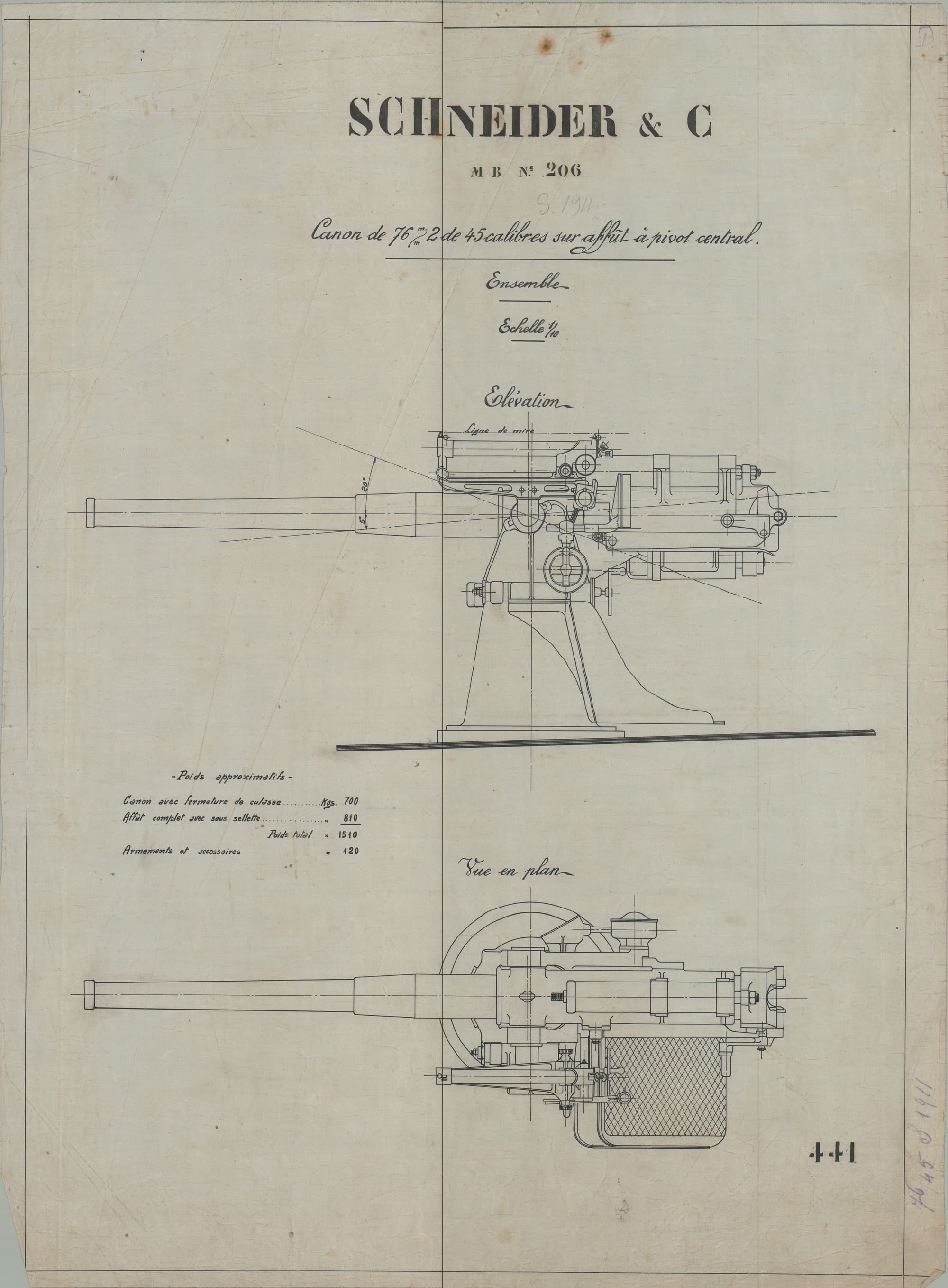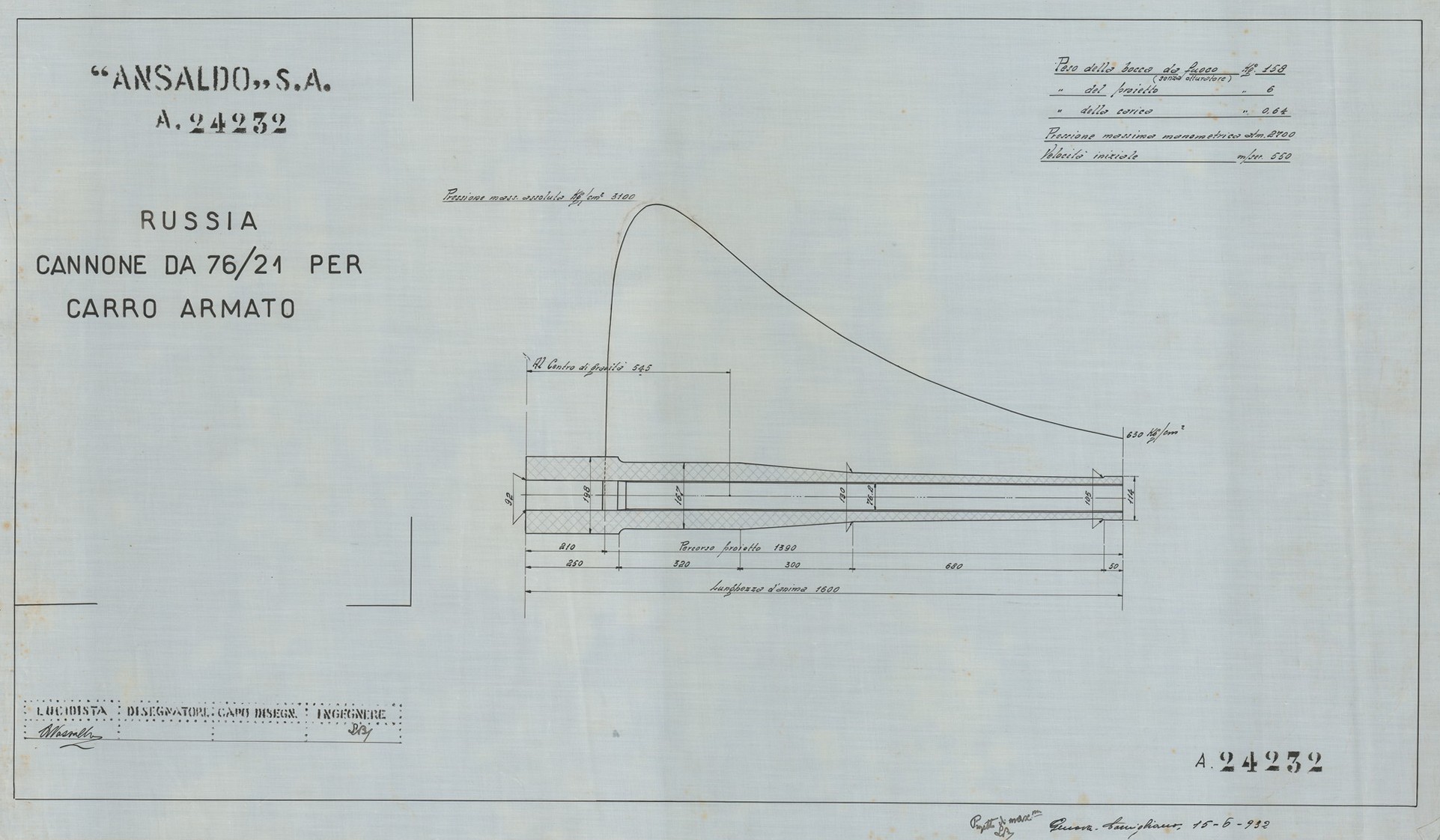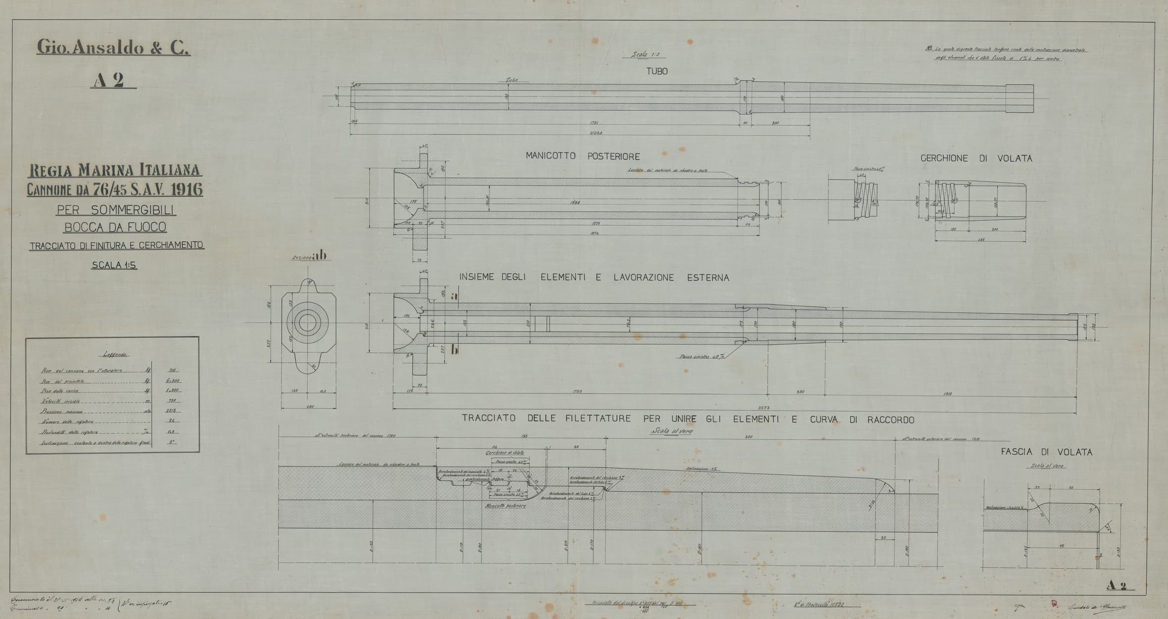 Cannone da 76/45 S 1911 - sezione longitudinale