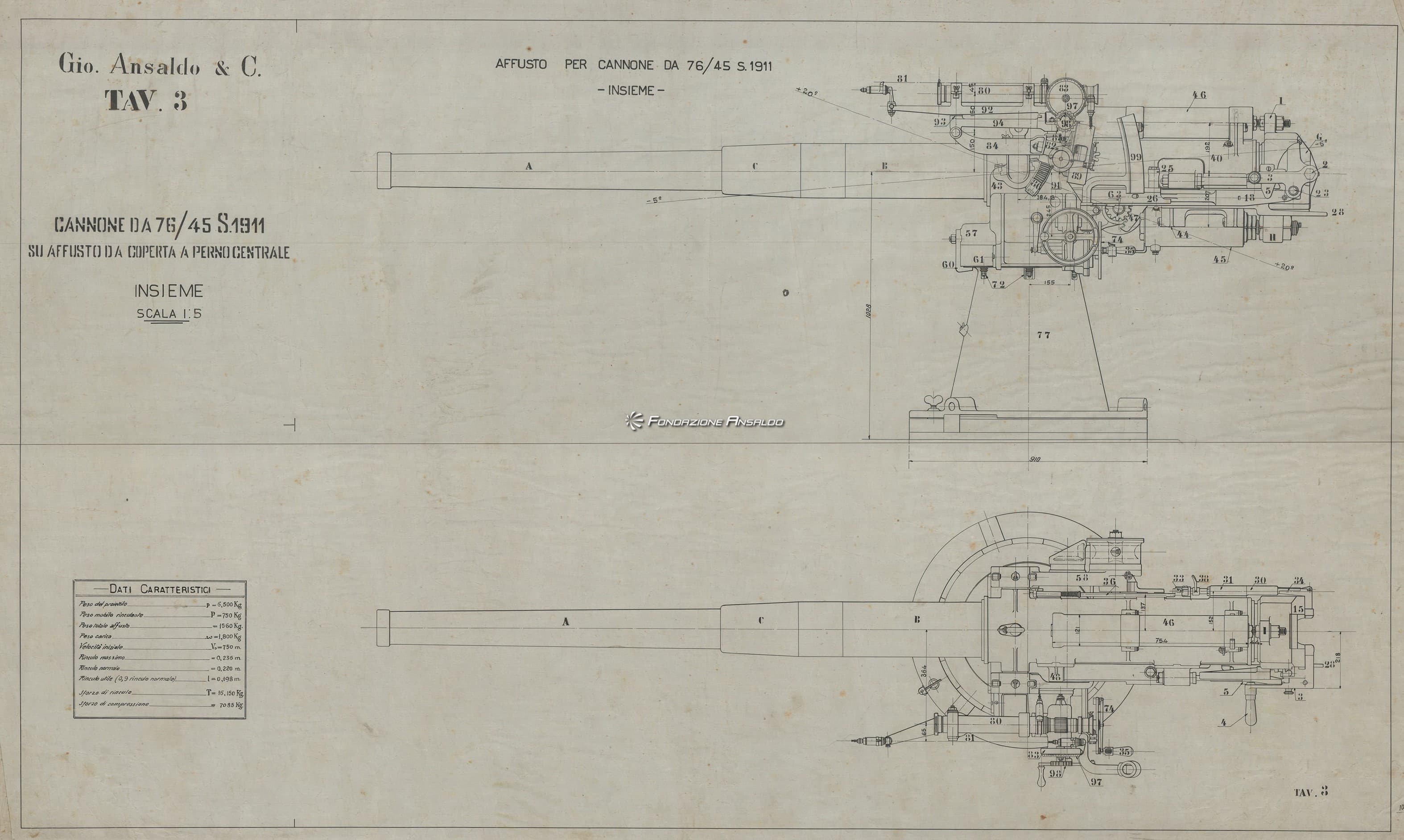 Cannone da 76/45 S 1911 - montaggio a perno centrale